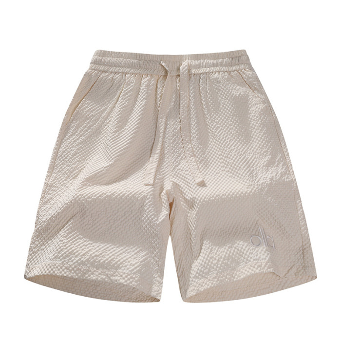 美式寬松泡泡格短褲男夏季休閒五分褲薄透氣運動速乾褲