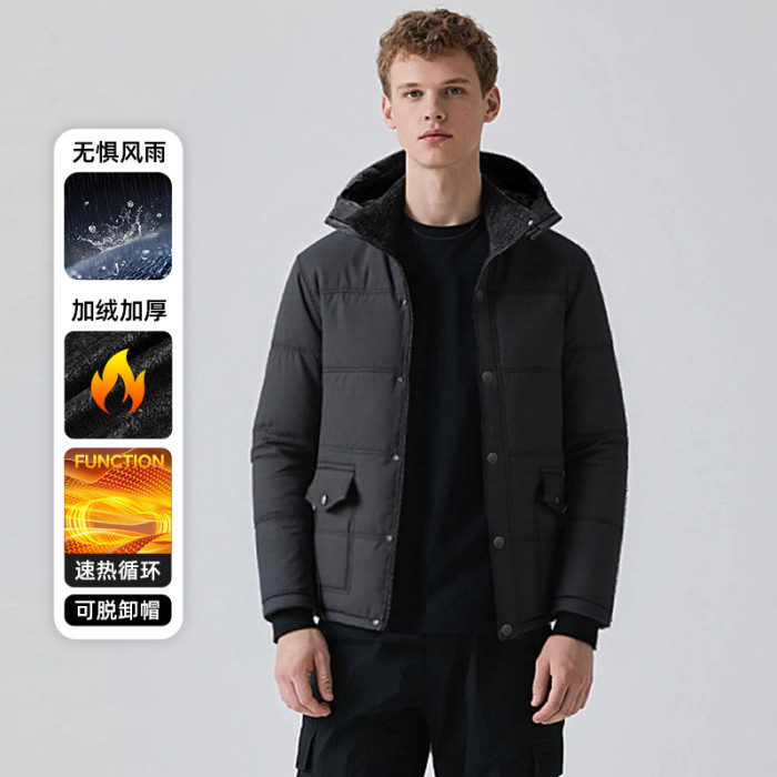 棉衣男士棉服冬季新款加絨加厚保暖棉襖可脫卸帽棉衣男