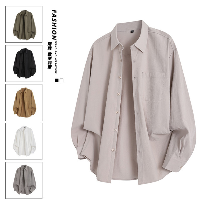 2025年春秋新款純色長袖襯衫男