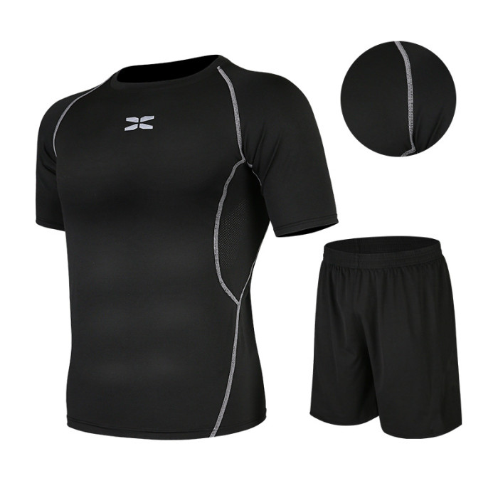 健身套裝男2025夏季健身房緊身跑步運動套裝夏裝衣透氣兩件套