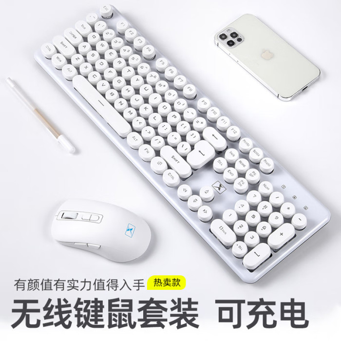 新盟N600無線鍵盤滑鼠套裝充電筆電平板電腦辦公復古圓鍵鍵鼠