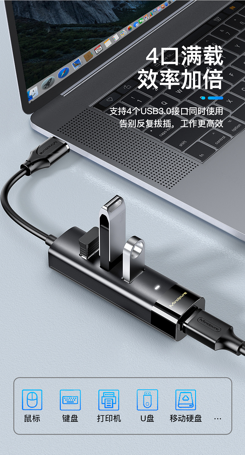 USB集線器3.0四口一分四拓展隖hub擴展器筆記型電腦type-c分線器