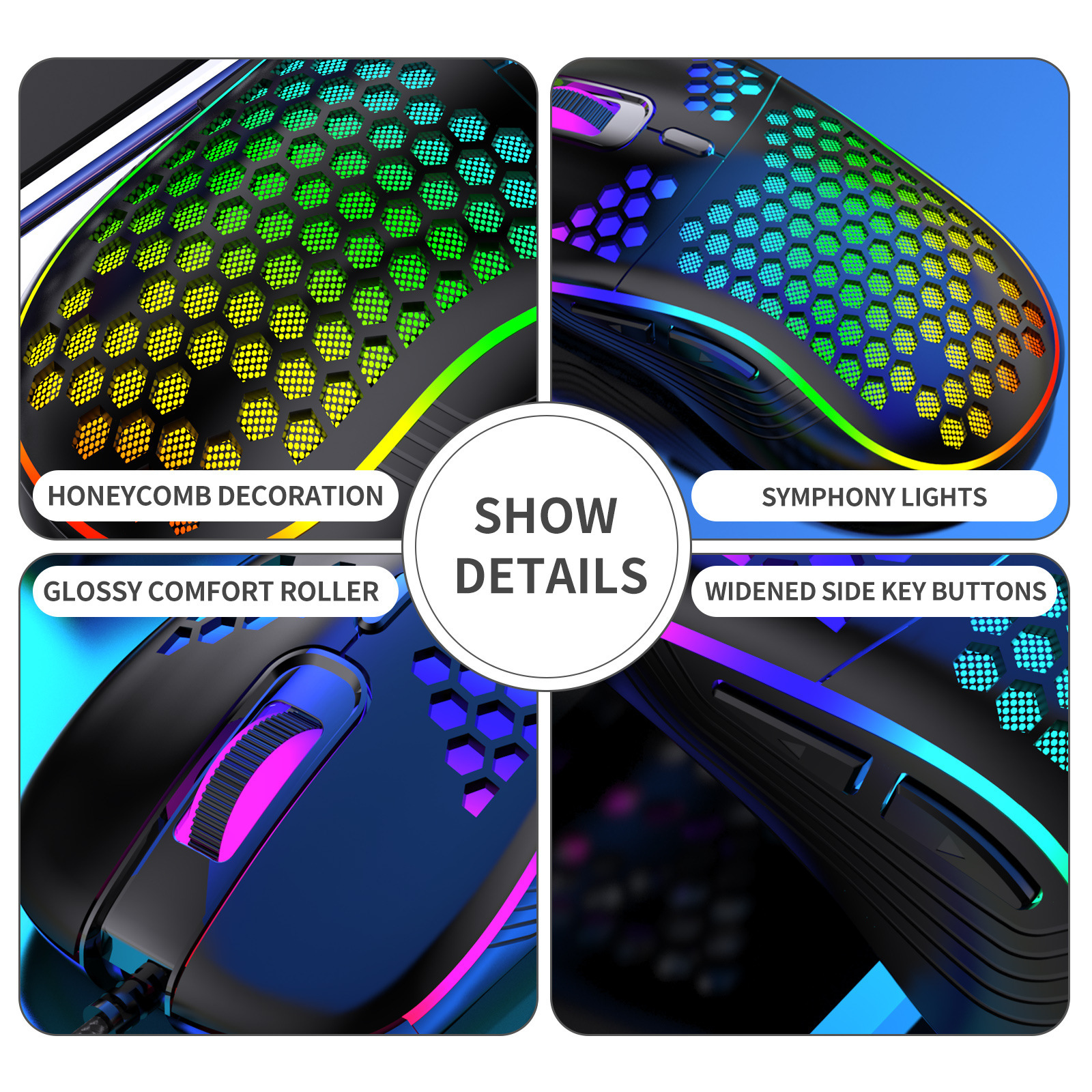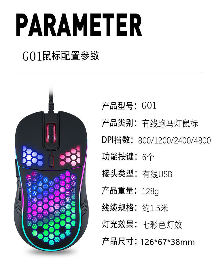 有線滑鼠洞洞輕量化鏤空RGB滑鼠遊戯專用設計品