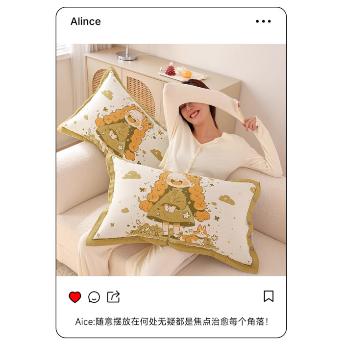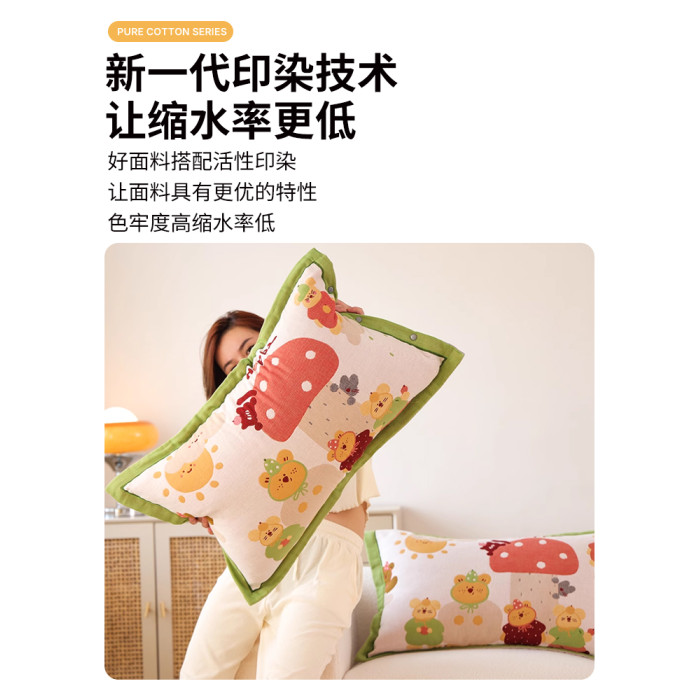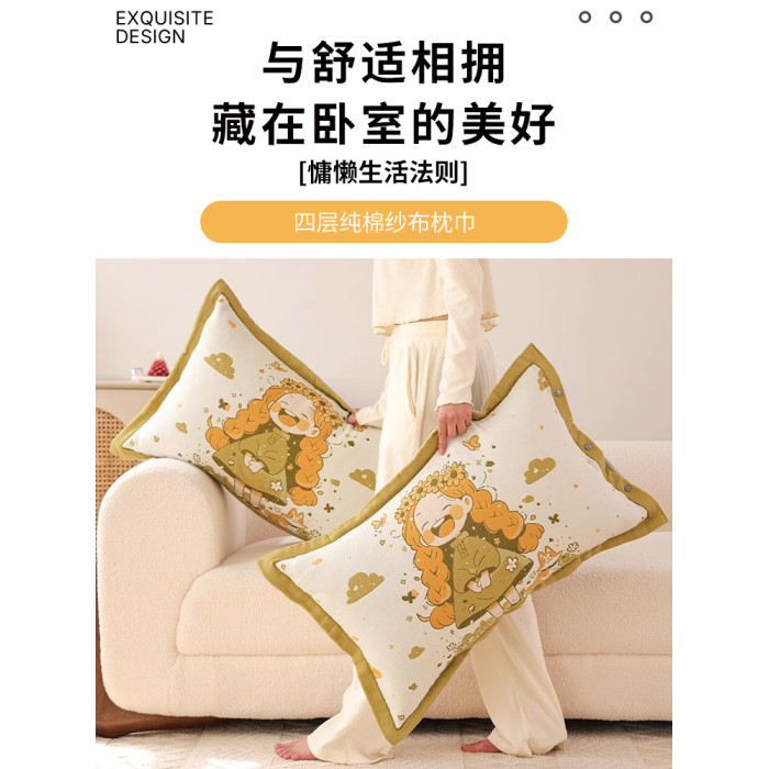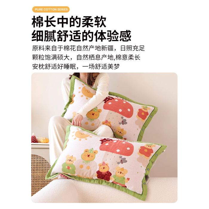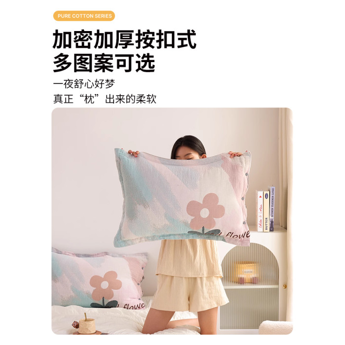 按釦純棉紗布枕套一對裝成人家用不脫落枕頭套卡通全棉枕芯內膽套