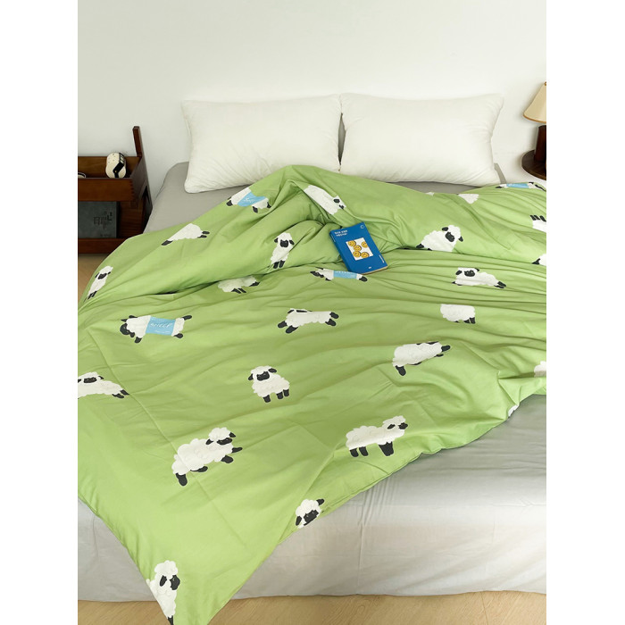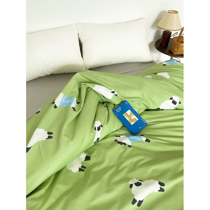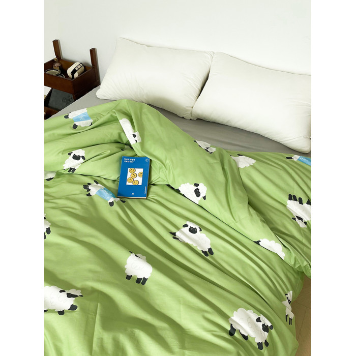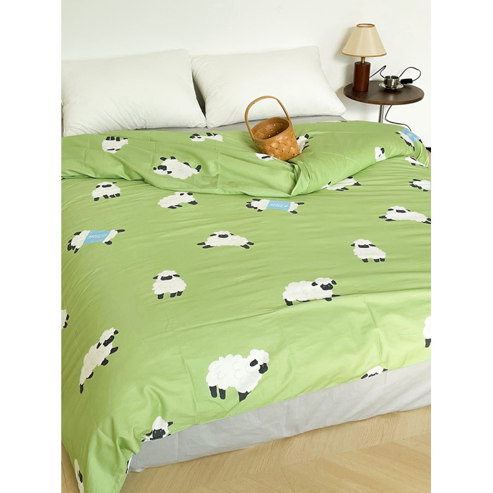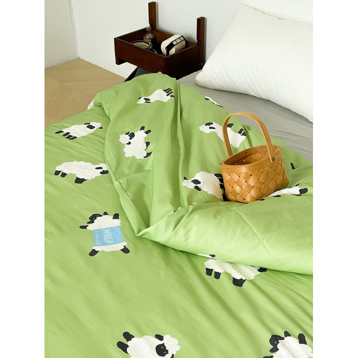 小羊有春天 可愛系原創小羊插畫全棉被套100純棉親膚透氣綠色單件