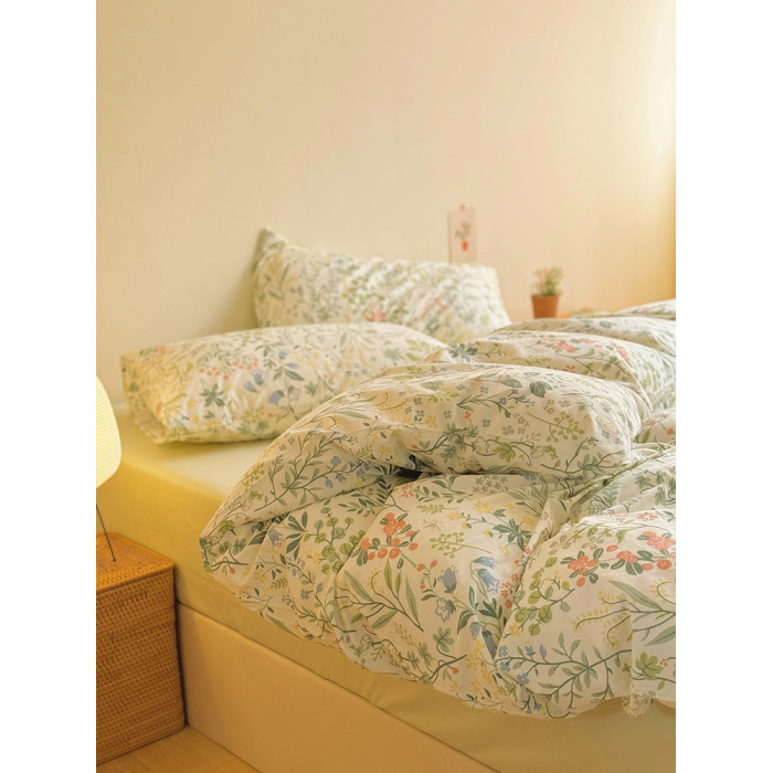 田園風植物被套四件套單件純棉單人學生宿舍1.5m1.8m雙人全棉被罩