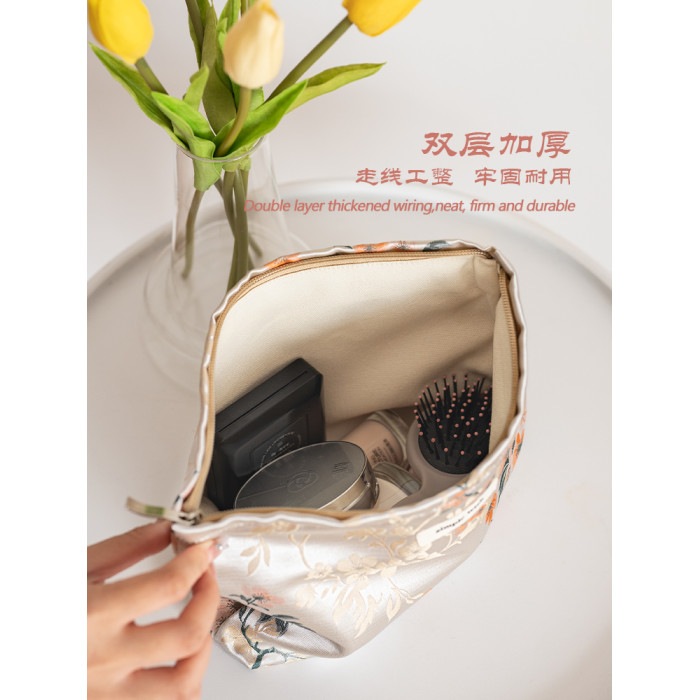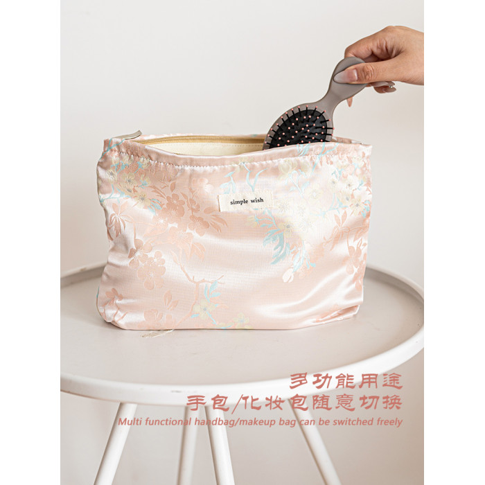 梅花緞面化妝包女可攜式大容量ins旅行洗漱包家用化妝品收納袋
