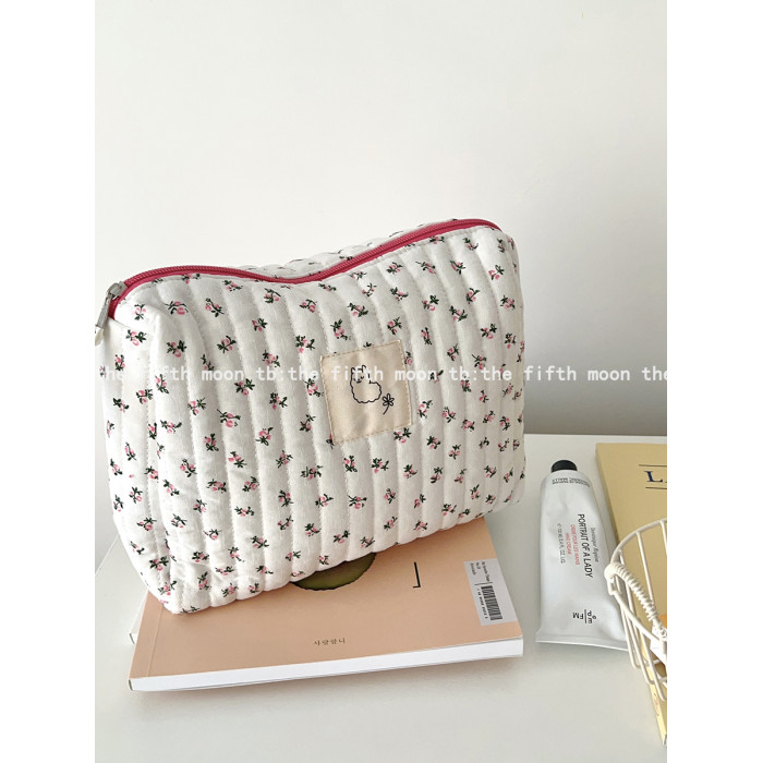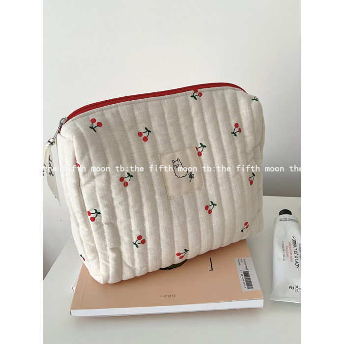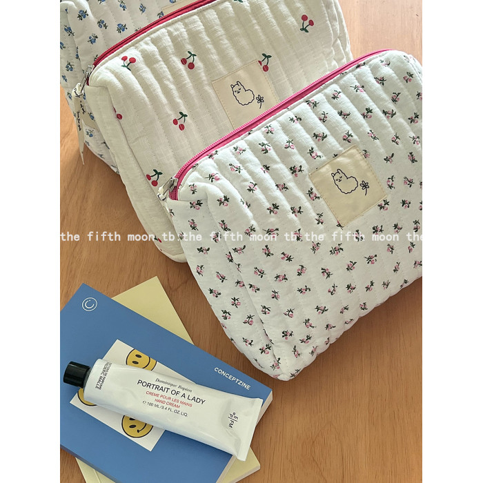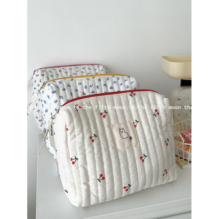 thefifthmoon清新碎花可愛小櫻桃絎縫大容量收納包媽咪包化妝包