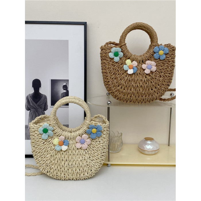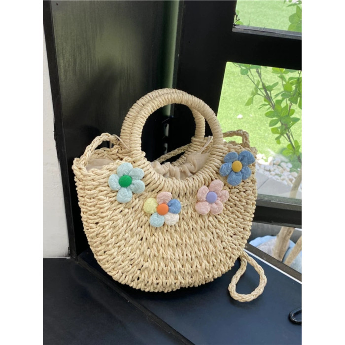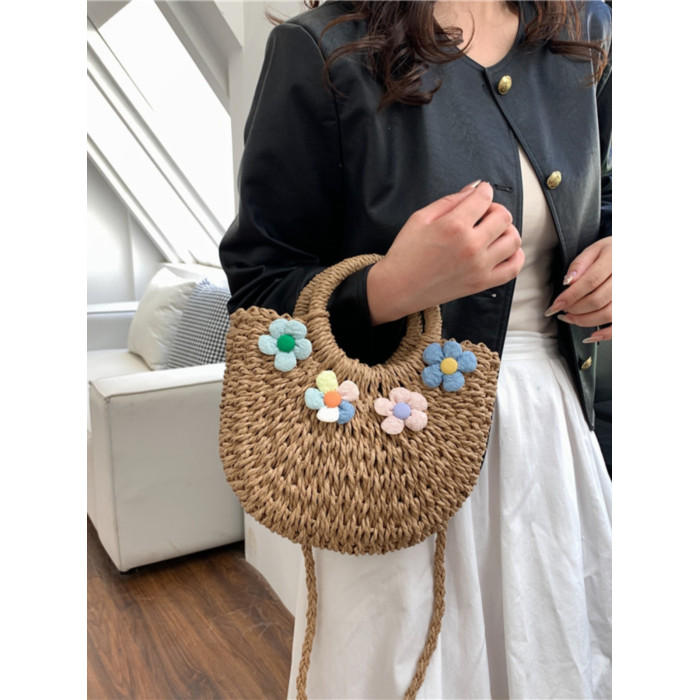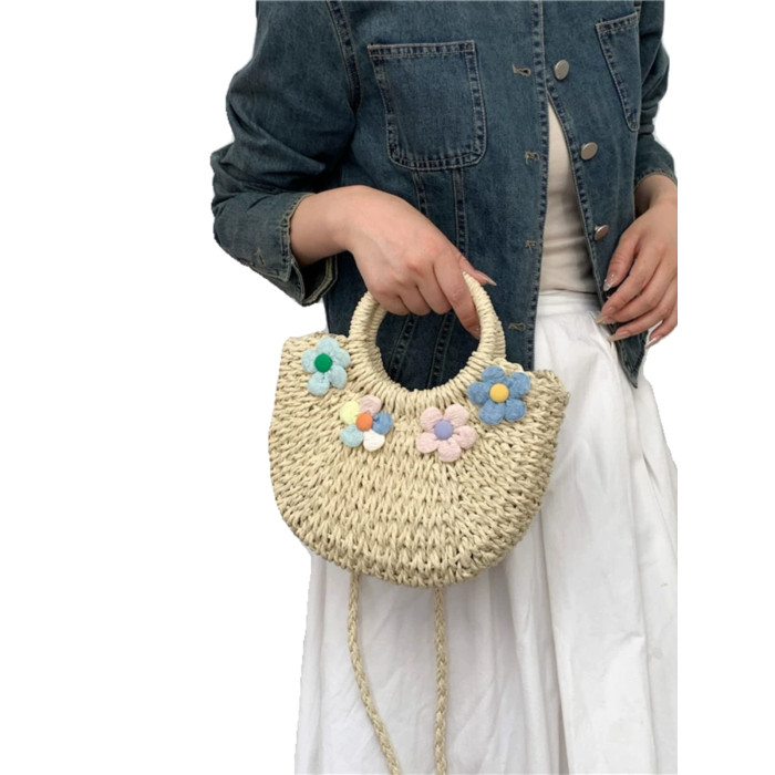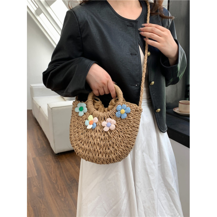 小衆設計手工編織包包2024新款女包時尚手提菜籃子單肩斜背草編包