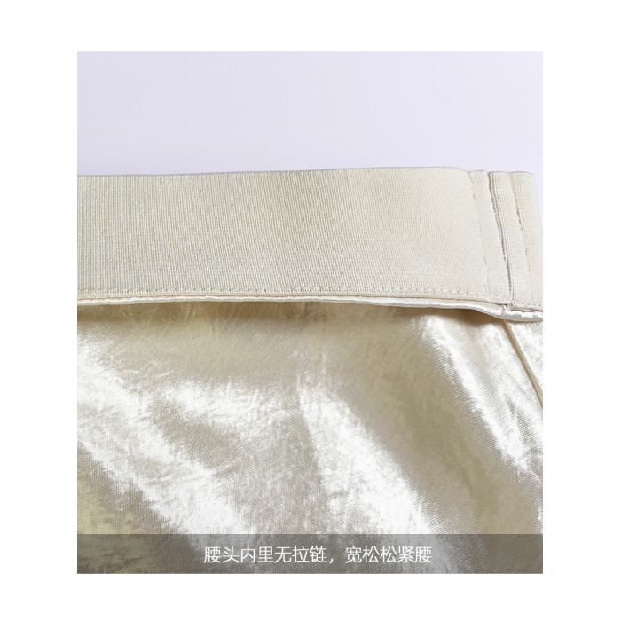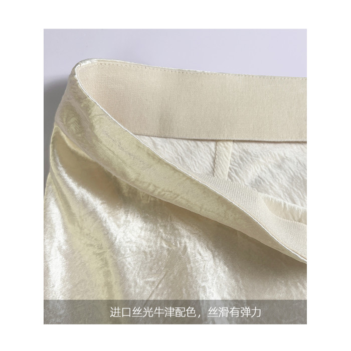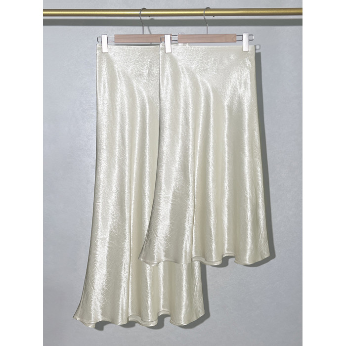 日本進口褶皺醋酸肌理感半身裙米白色中長裙顯瘦魚尾長裙a字裙女