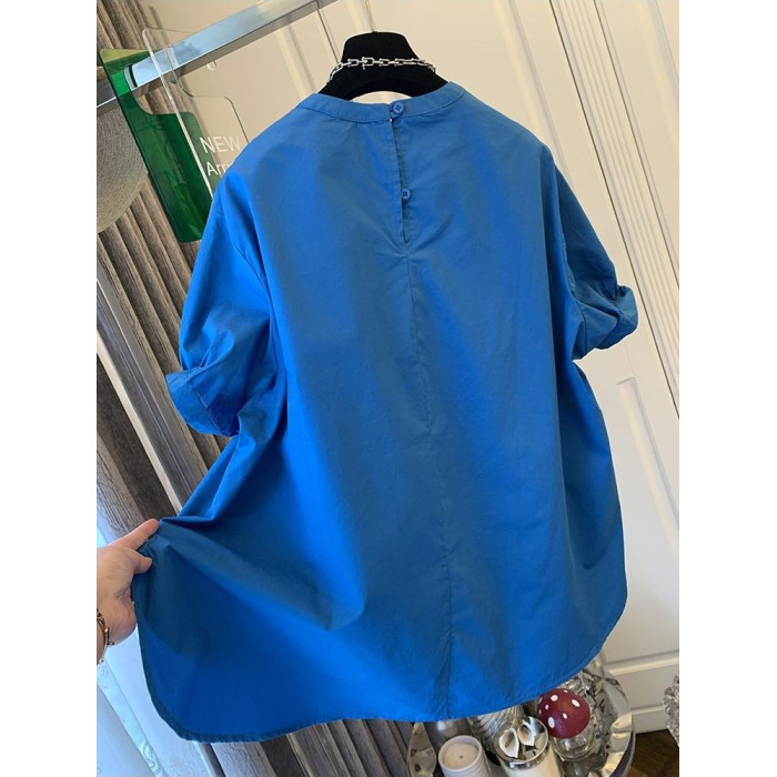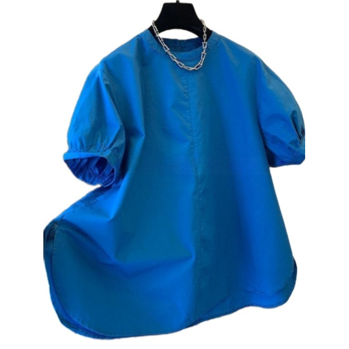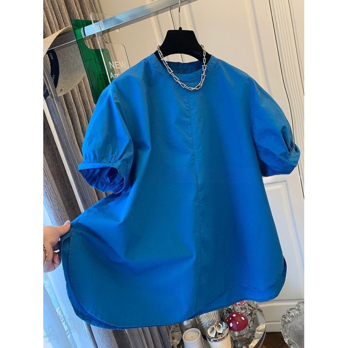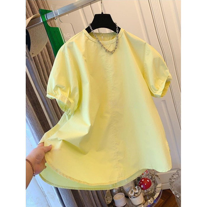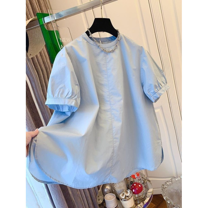專櫃撤迴剪標法式氣質泡泡袖短袖襯衫女寬松顯瘦大版娃娃衫上衣
