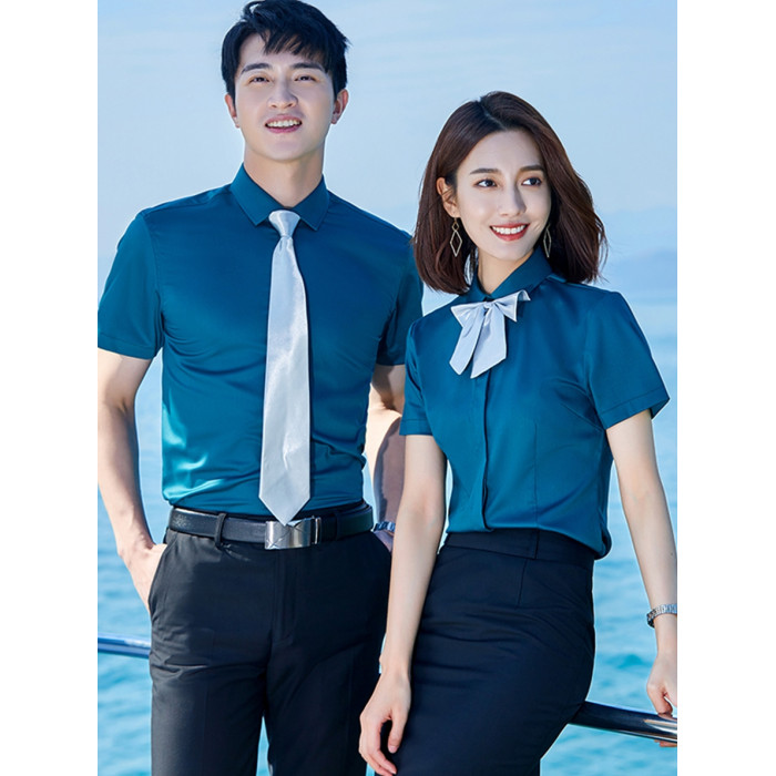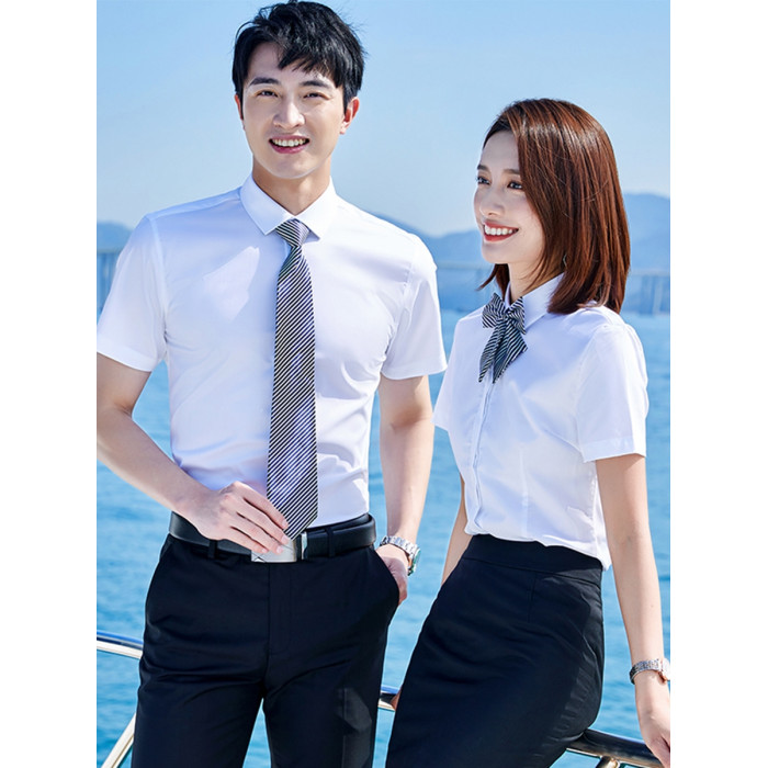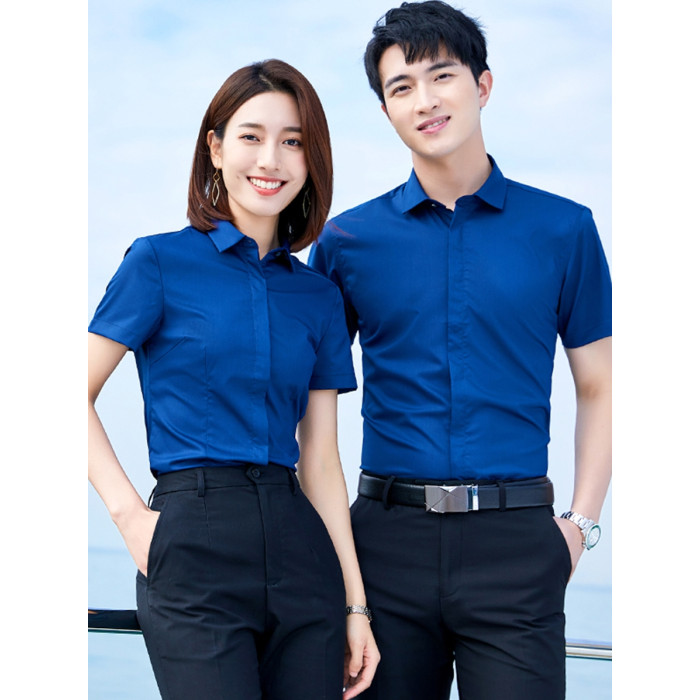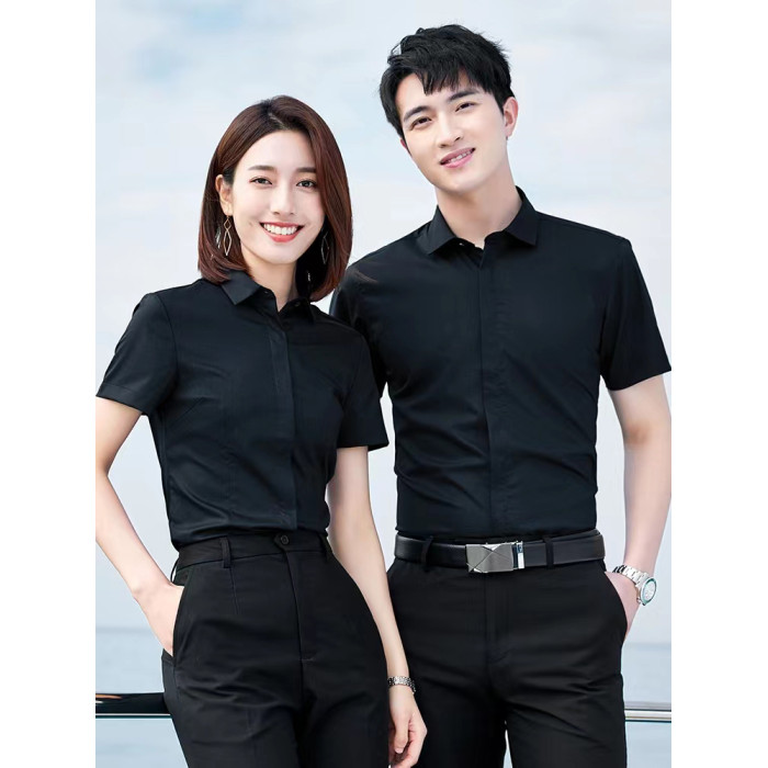 竹纖維襯衫女短袖氣質夏季黑色男女職業裝暗釦商務襯衣工作服套裝