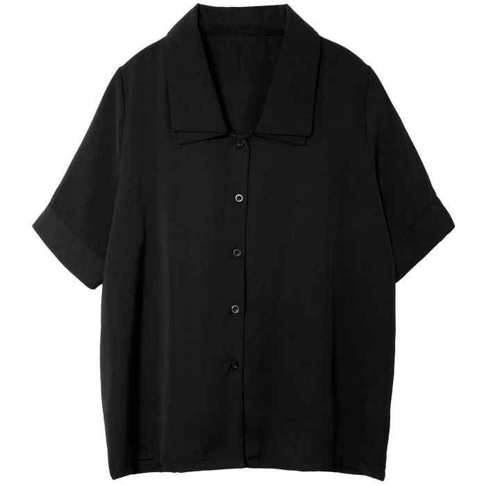 黑色短袖襯衫女xc香菜穿搭通勤法式v領復古襯衣正肩港風上衣夏黑