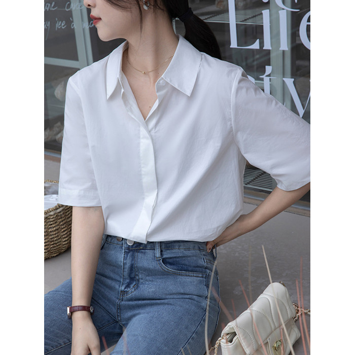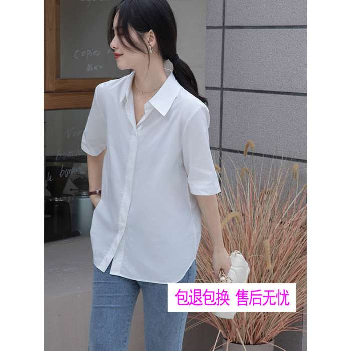 加大碼寬松經典白色短襯衫女士顯瘦百搭春夏季薄款工作服正裝上衣