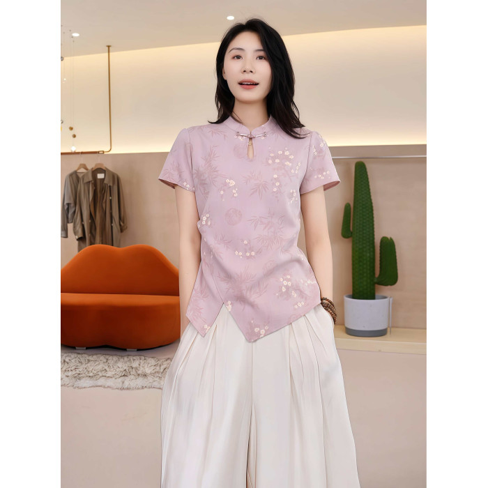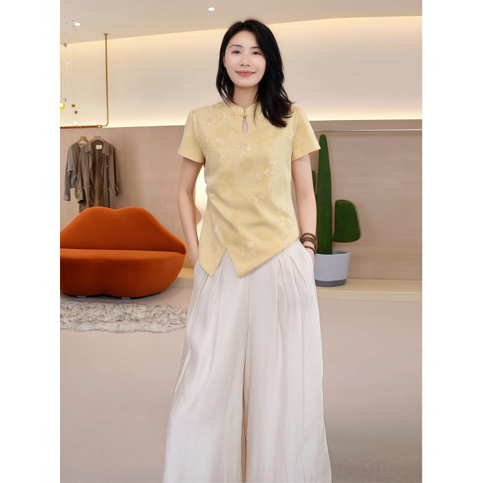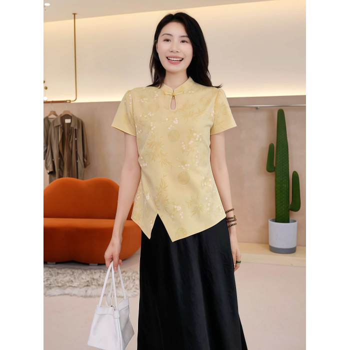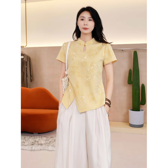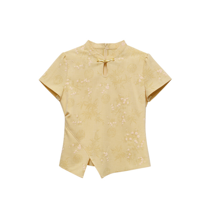 麥芽/Mayya 新中式國風盤釦襯衫女2025夏季新款立領百搭開叉上衣
