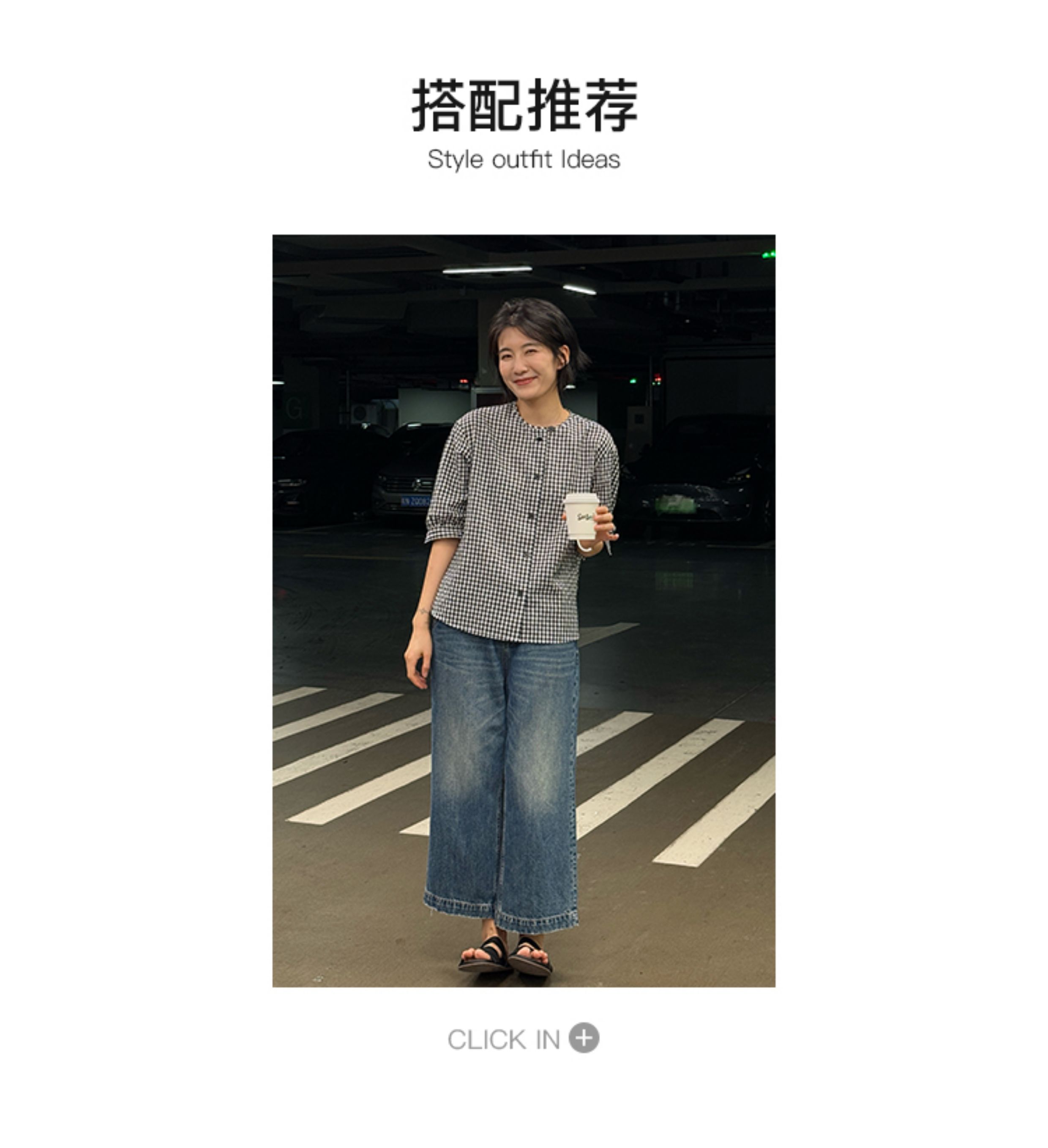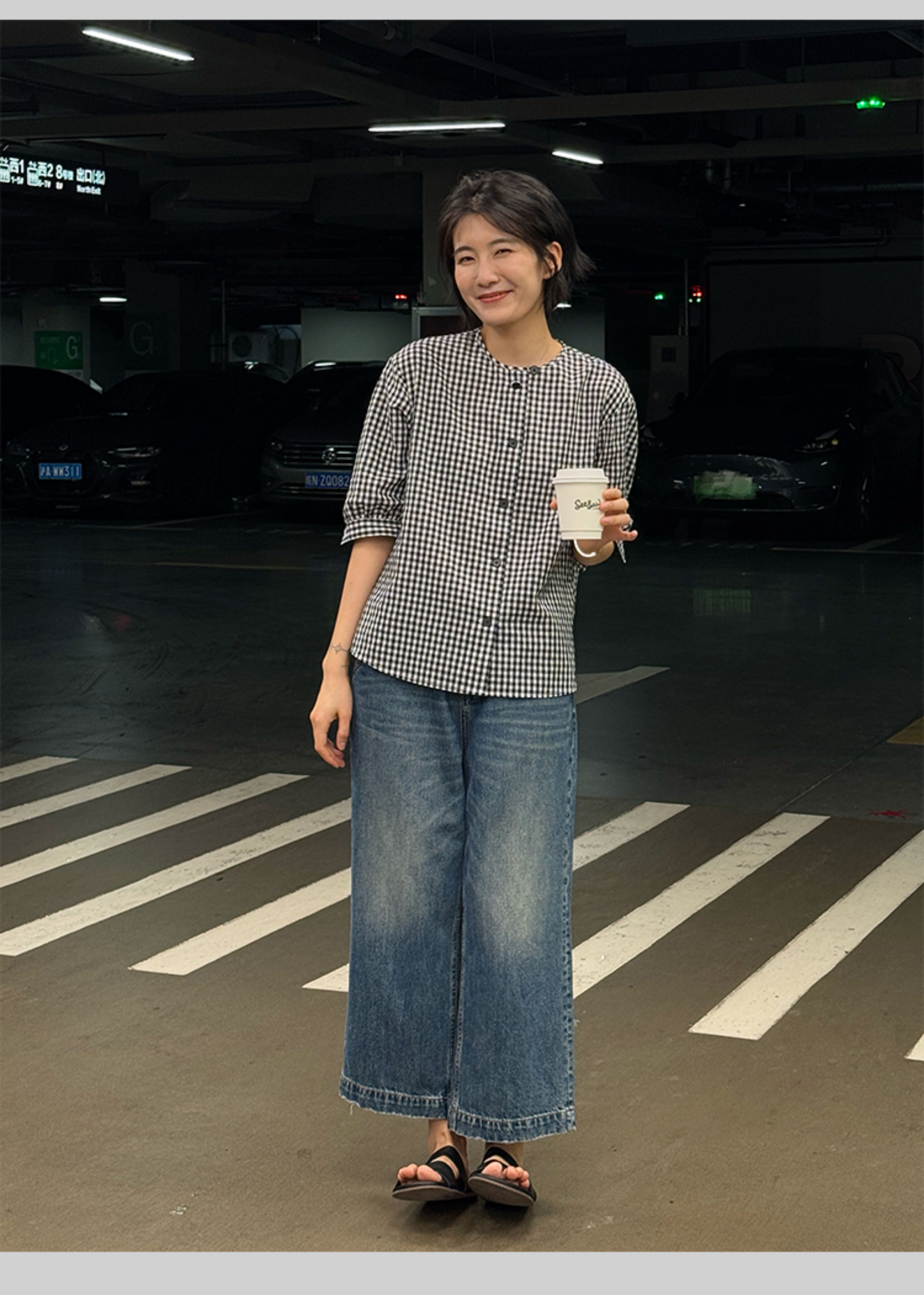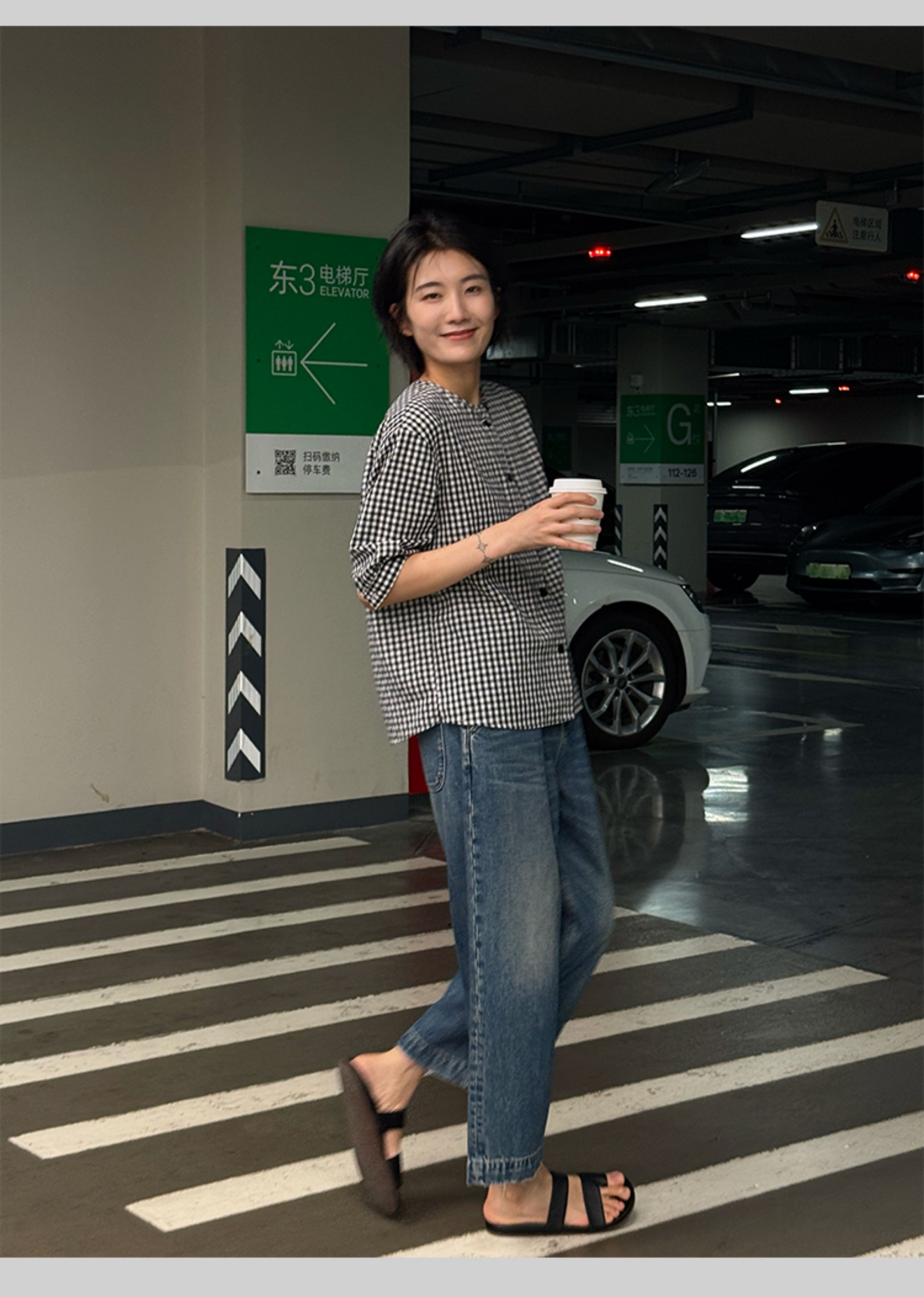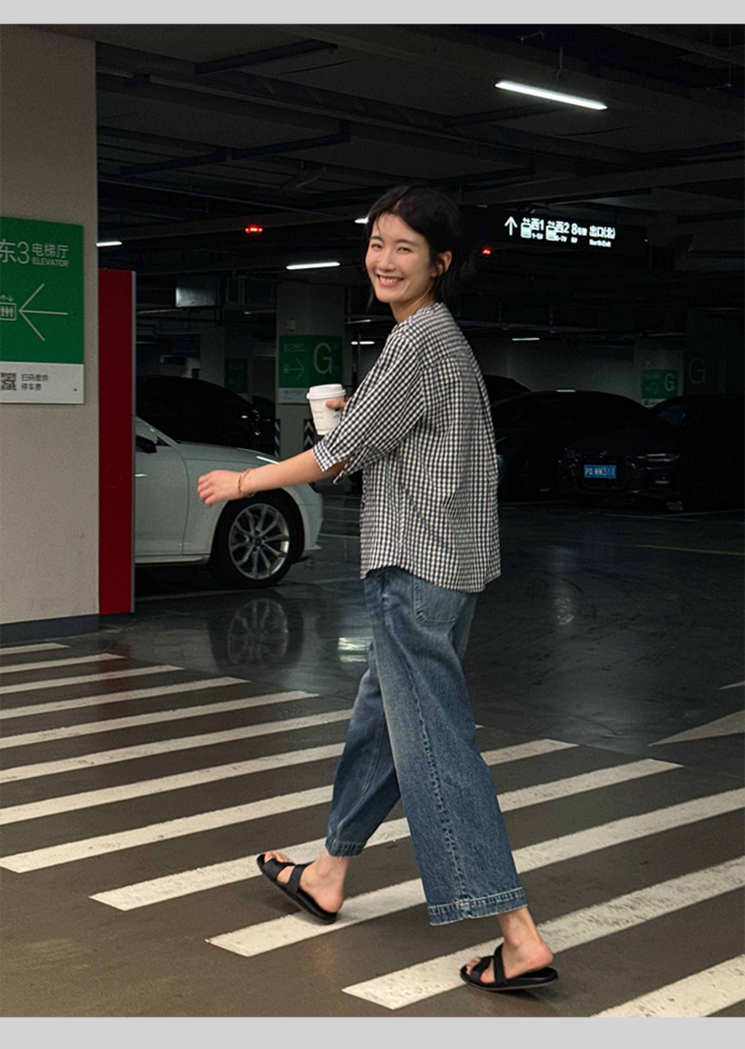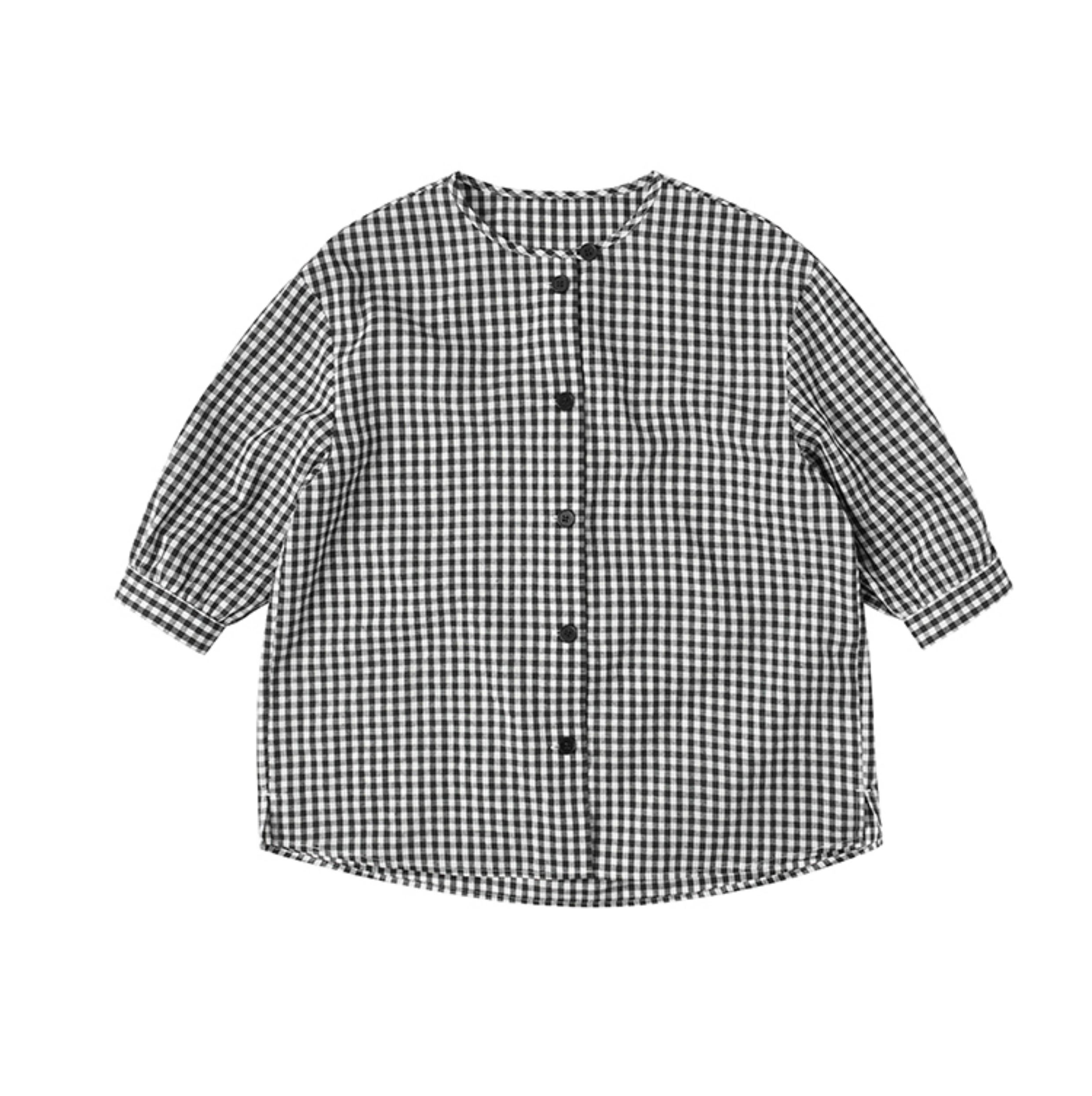 浪清格子襯衫女早秋2025新款寬松五分袖上衣女獨特超好看別致小衫