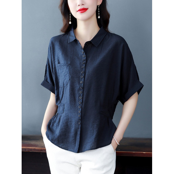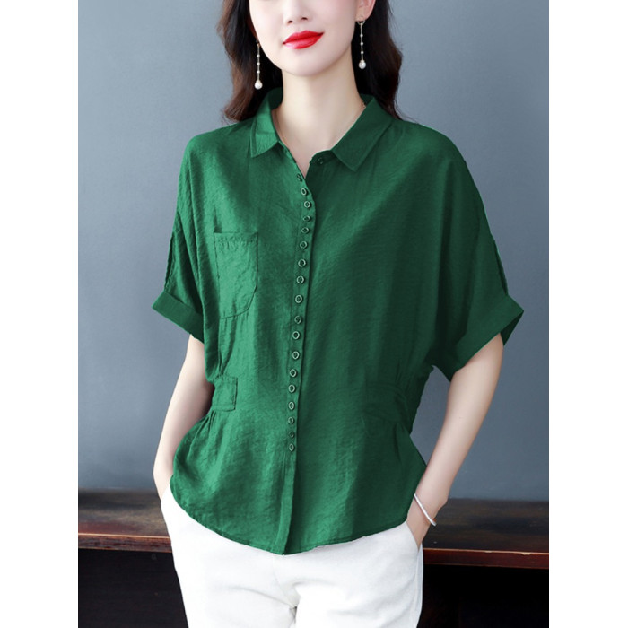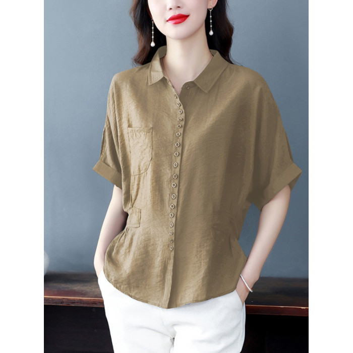 高檔棉麻短袖襯衫女時尚百搭襯衣收腰顯瘦遮肚子上衣2025夏裝新款