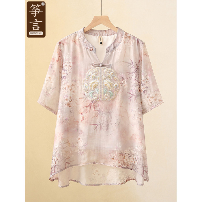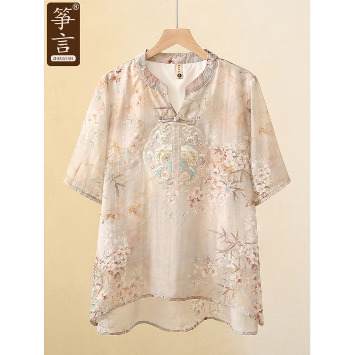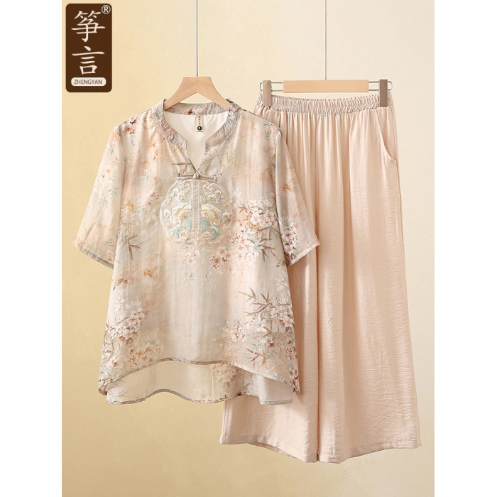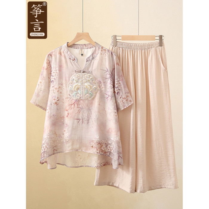 媽媽夏季套裝2025新款棉麻洋氣兩件套衣服中老年女裝氣質短袖t恤