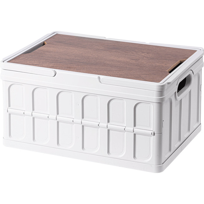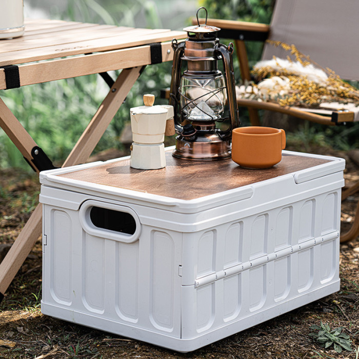 戶外折曡收納箱露營收納箱手提式儲物箱木蓋板多功能收納箱手提籃