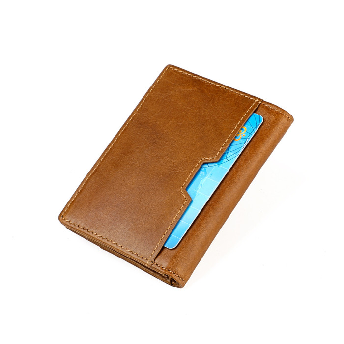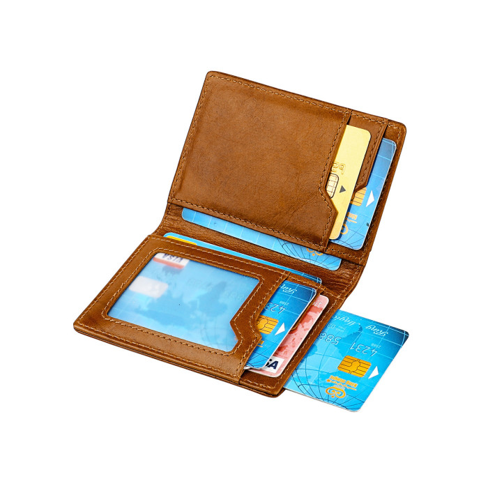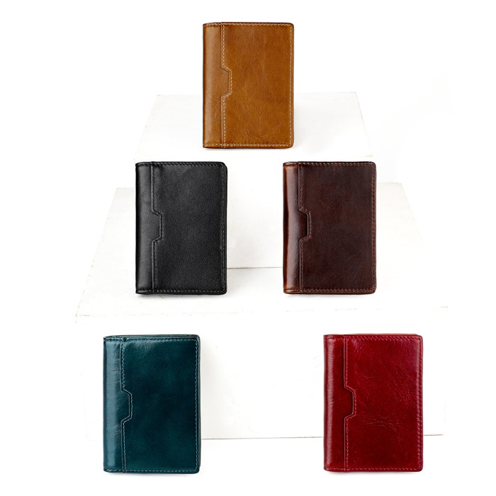 瘋馬皮復古真皮卡包簡易証件包防消磁信用卡卡夾頭層牛皮錢包