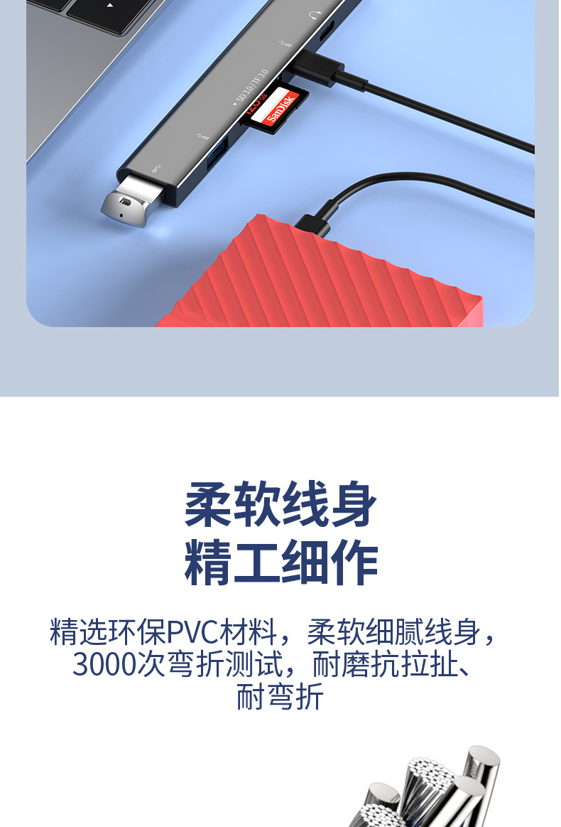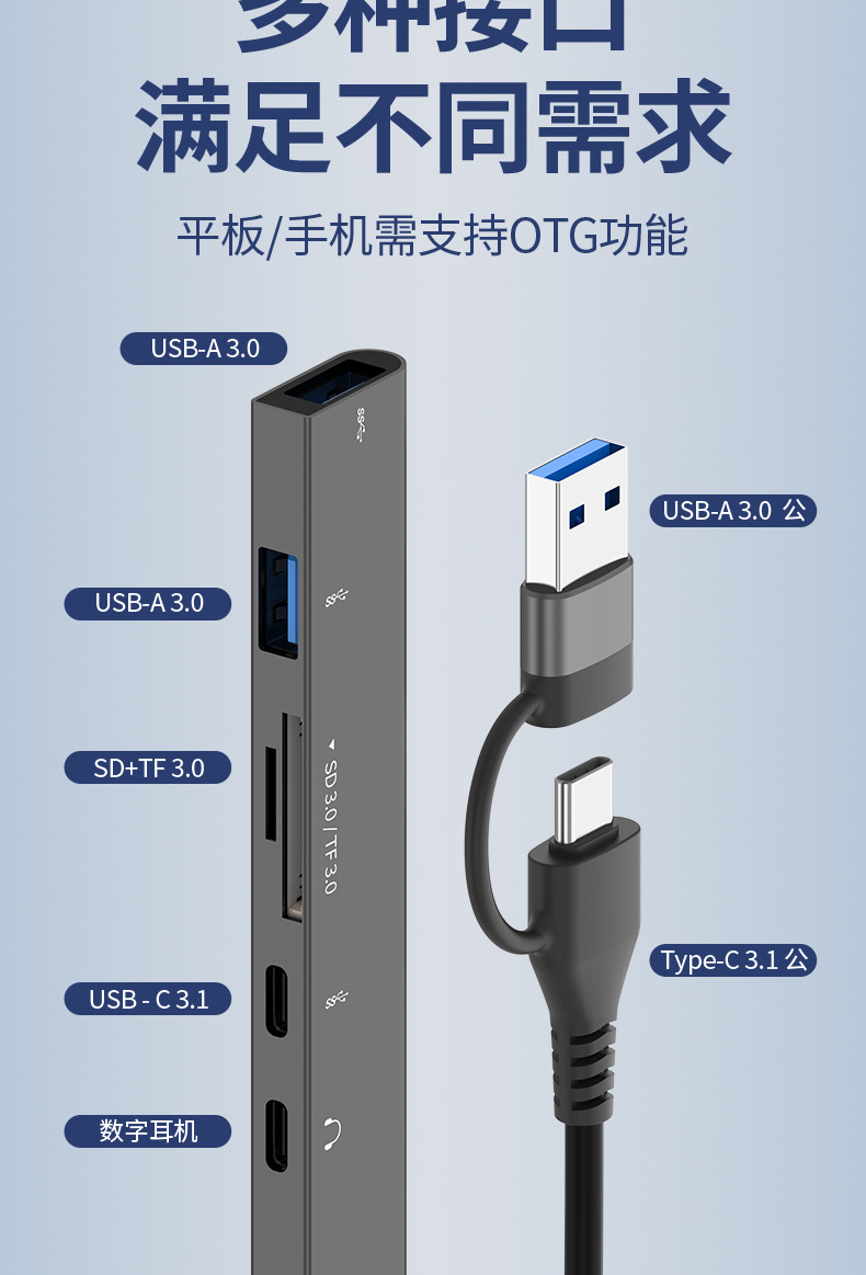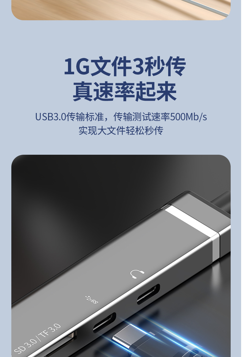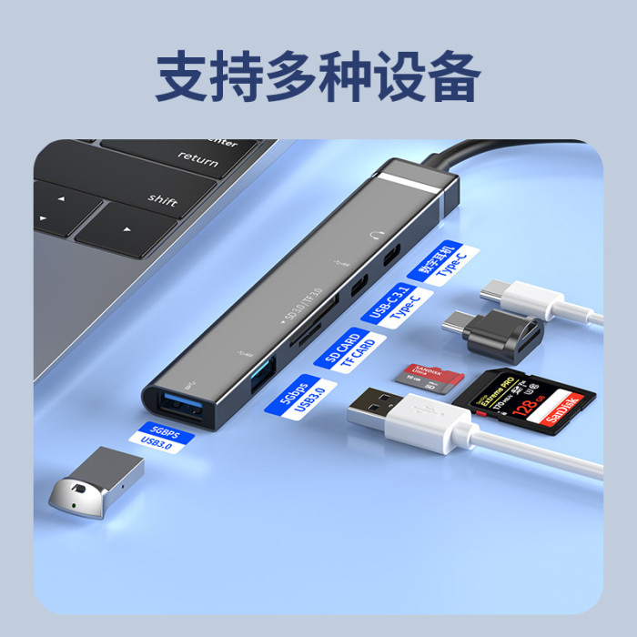 多口擴展隖六合一適用蘋果華爲手機電腦USB3.0大功率多功能拓展隖