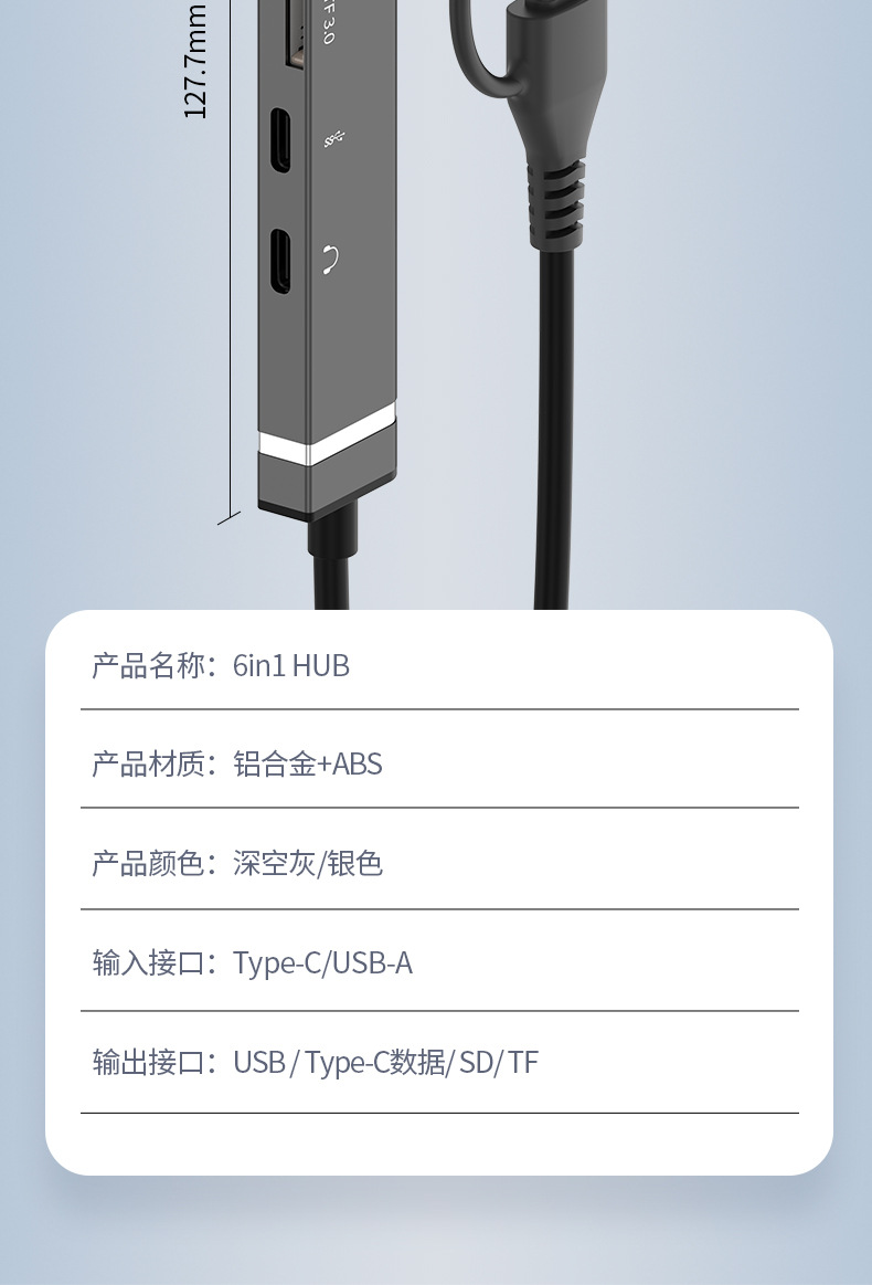 【灰色】Type-C+USB-A六口分線器