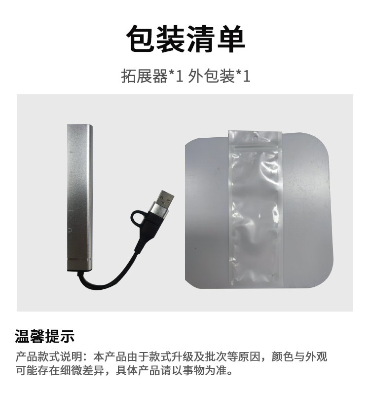 【銀色】Type-C+USB-A六口分線器