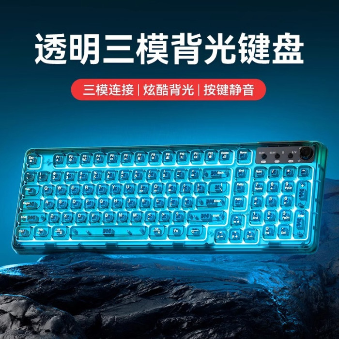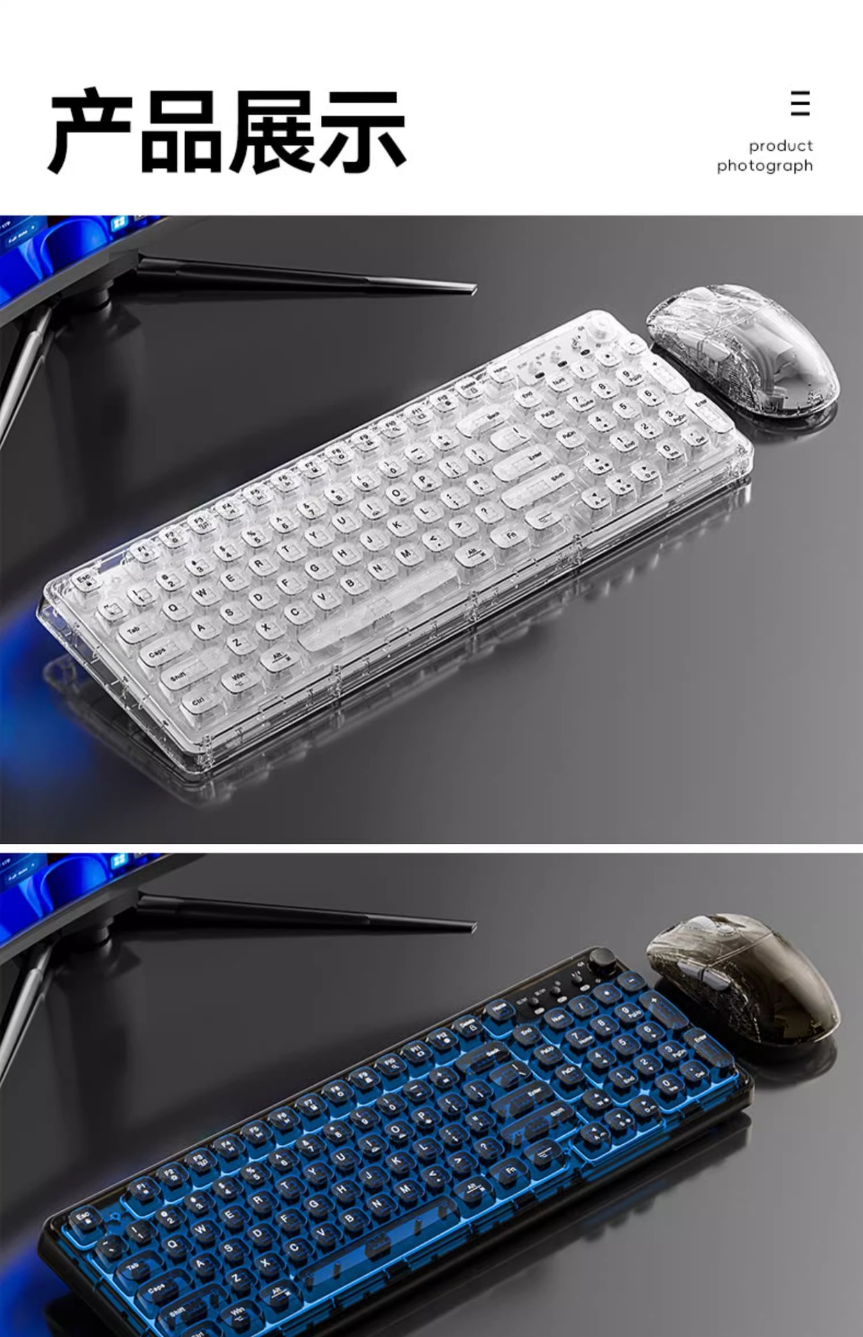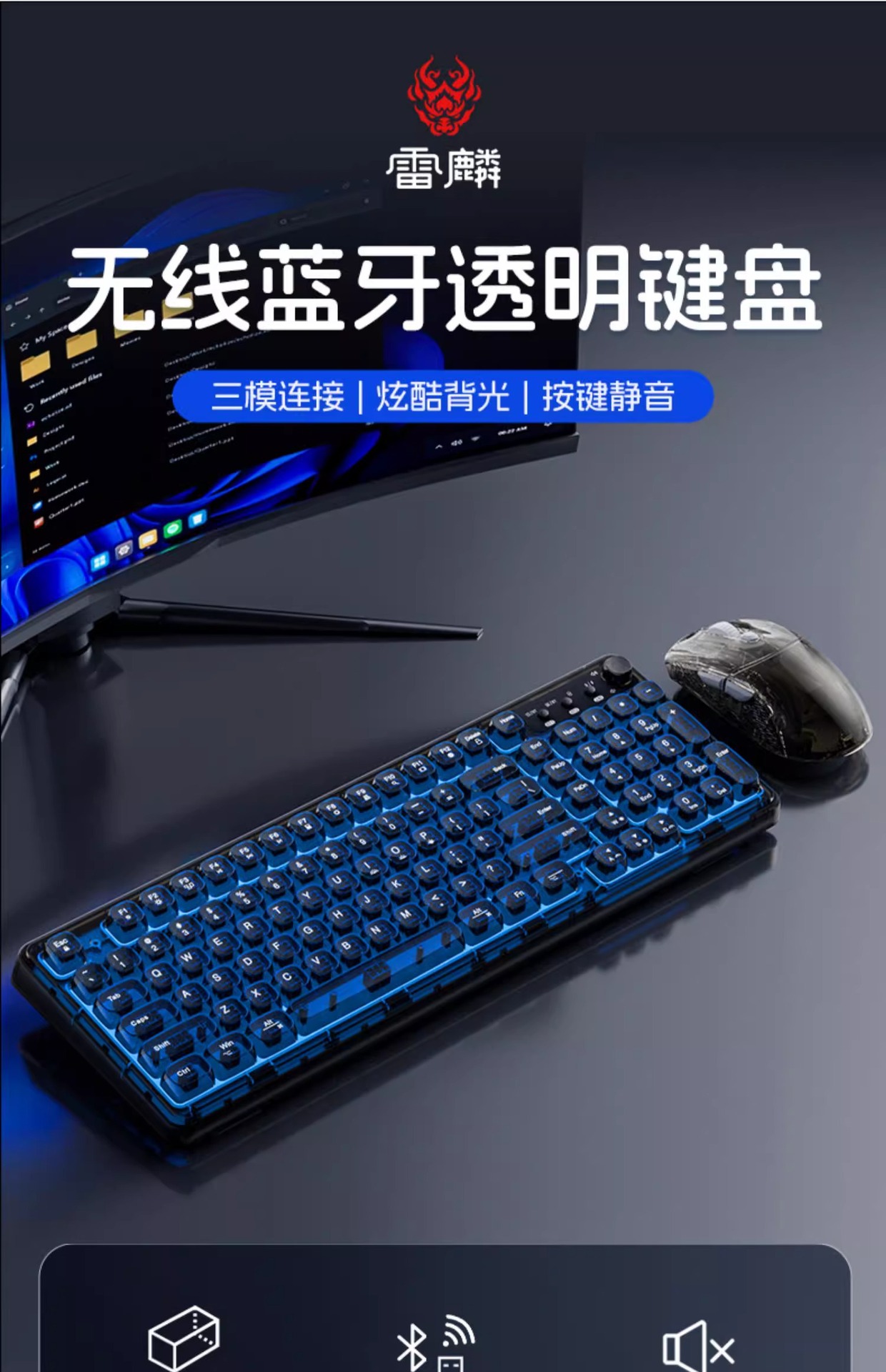 雷麟Z98透明無線藍牙鍵盤滑鼠套裝機械手感電腦鍵鼠女生辦公靜音