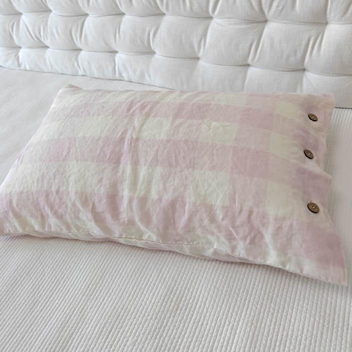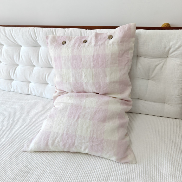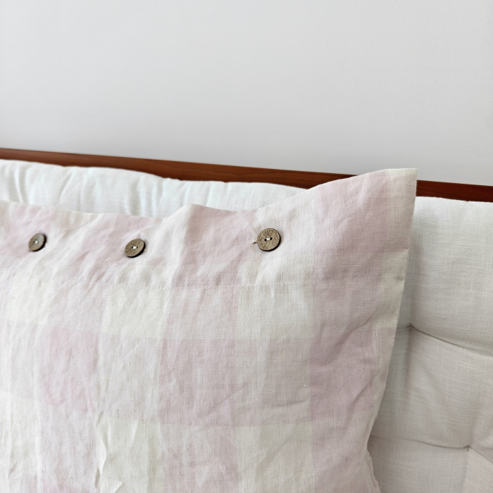 淺粉大方格木釦枕套一個(不含芯)