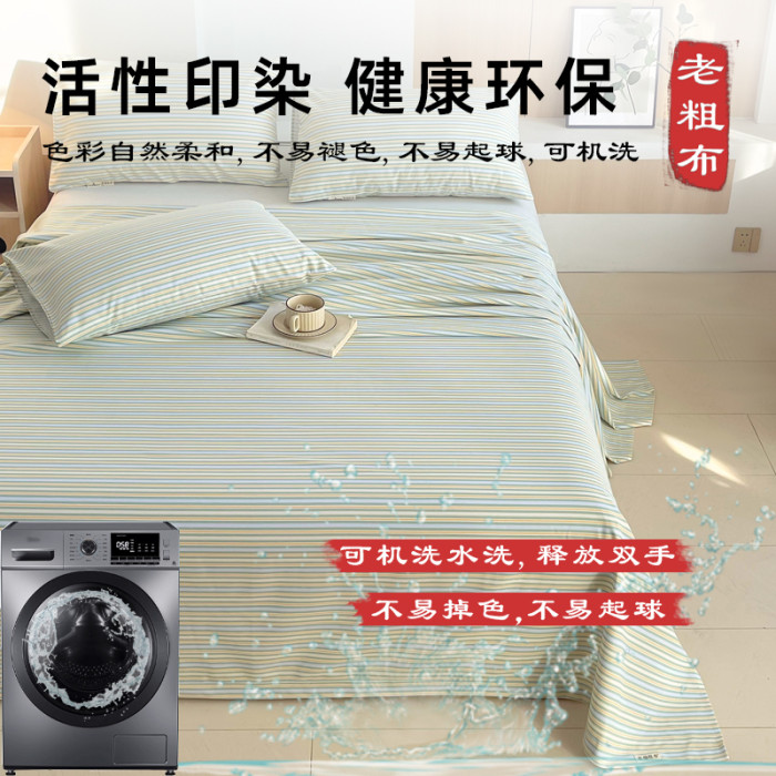 A類純棉100全棉老粗布床單單件加厚夏季新款被單人炕單涼蓆三件套