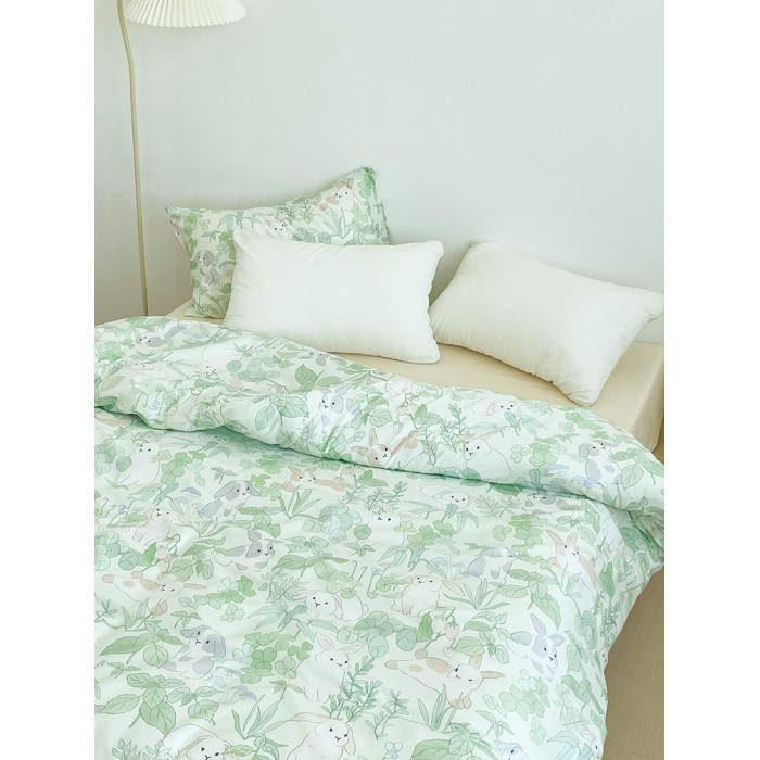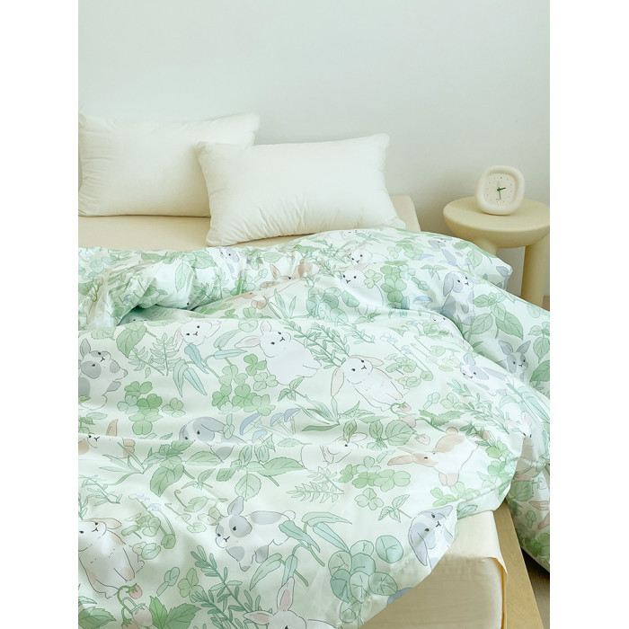兔兔與森林 設計師手繪小清新全棉1.5米被套可愛小兔子被芯罩單件