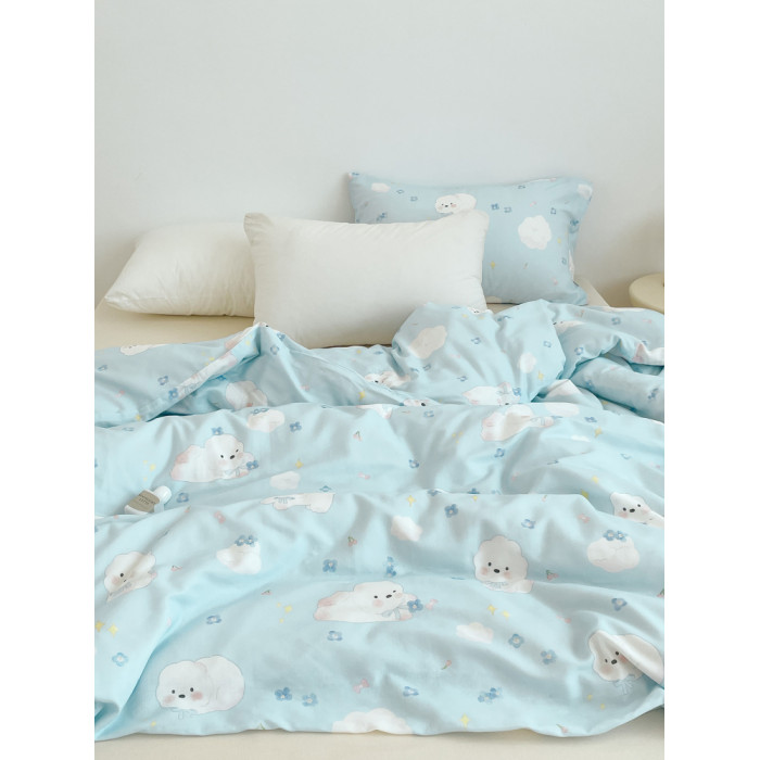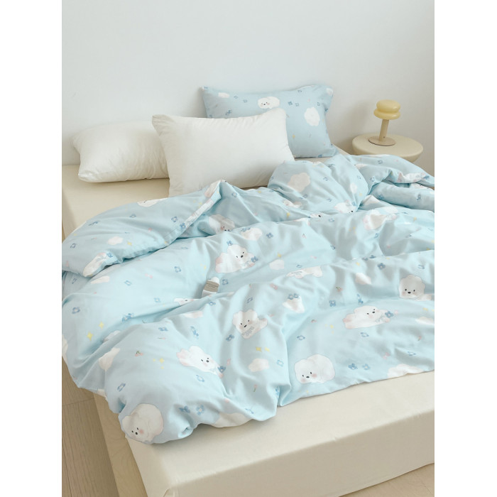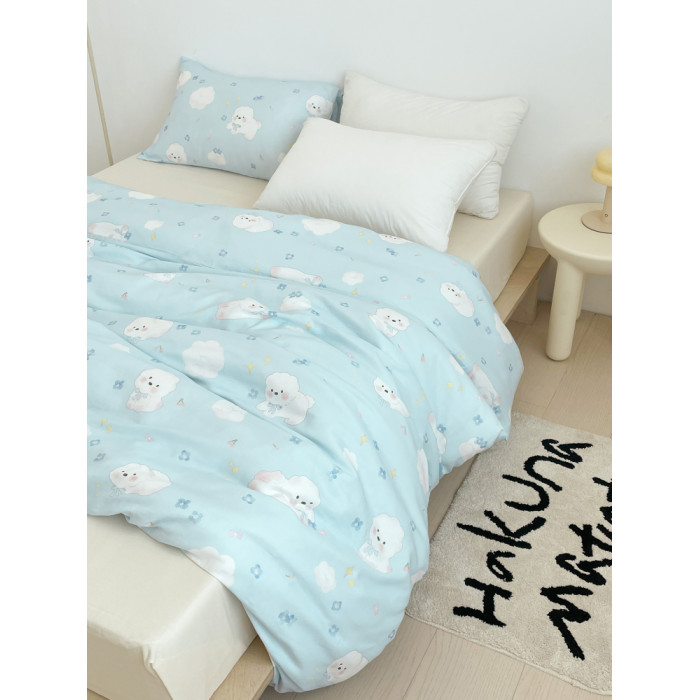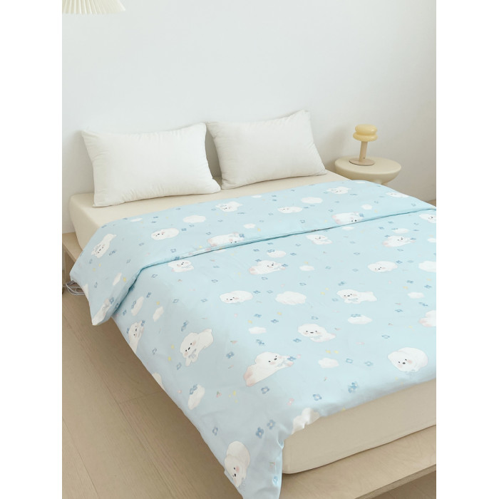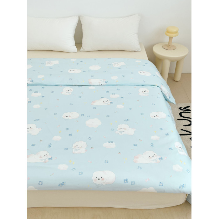 綿綿雲小白 奶fufu可愛小狗藍色a類純棉雙層紗被套學生床被罩單件