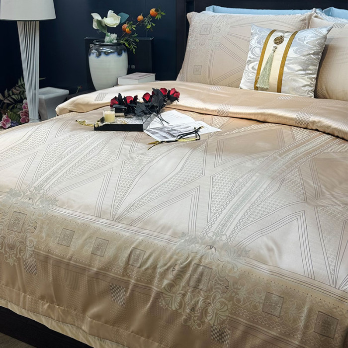 高精密200支全棉長絨棉貢緞提花被套四件套純棉四季被罩床上用品