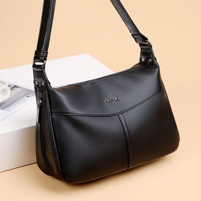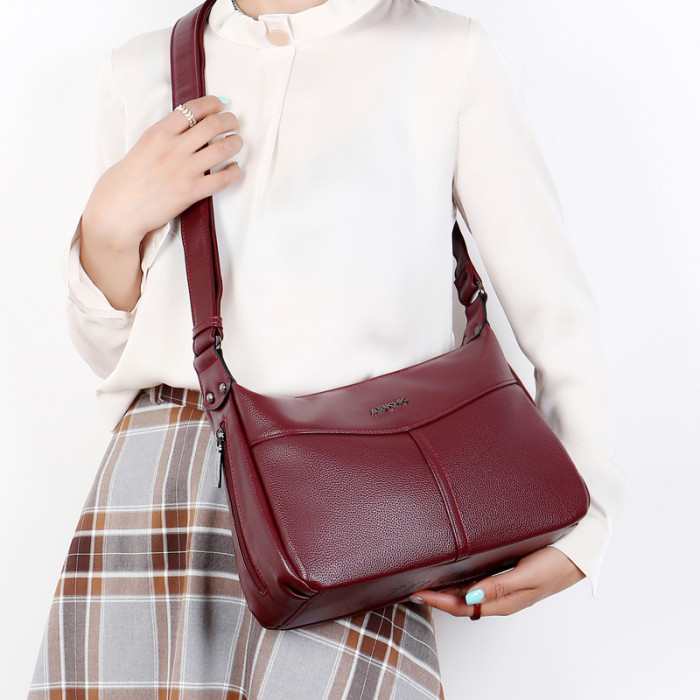 真皮女包媽媽包中年軟皮單肩斜後背包50嵗婆婆中老年人大容量大包包