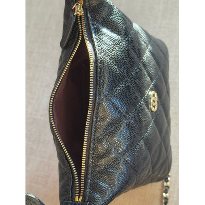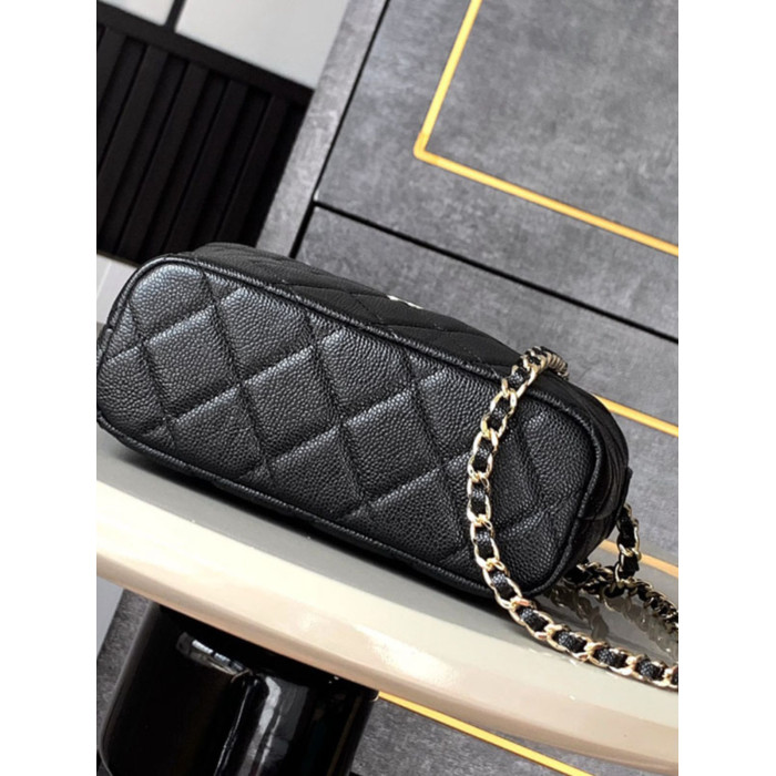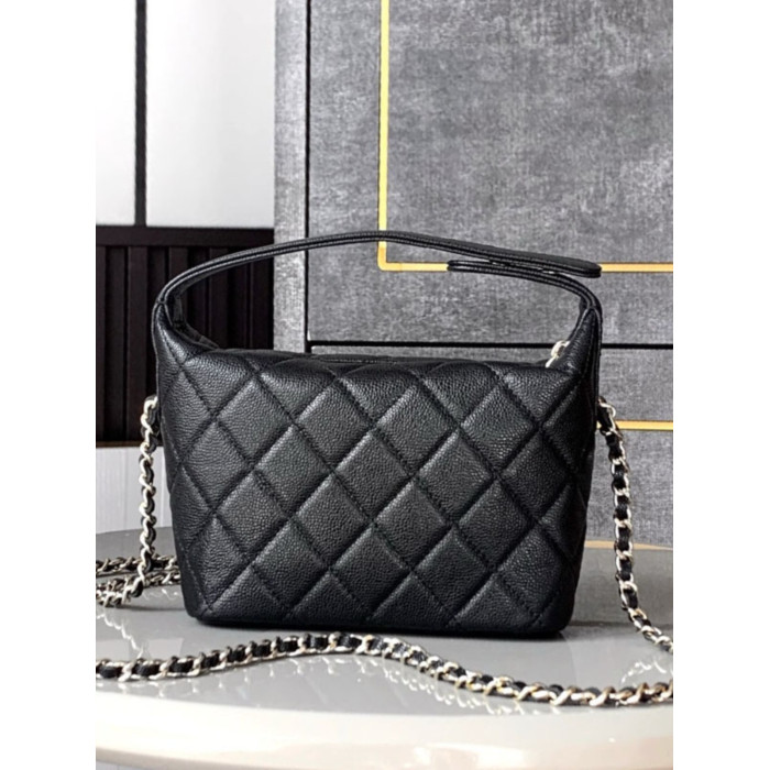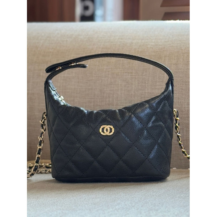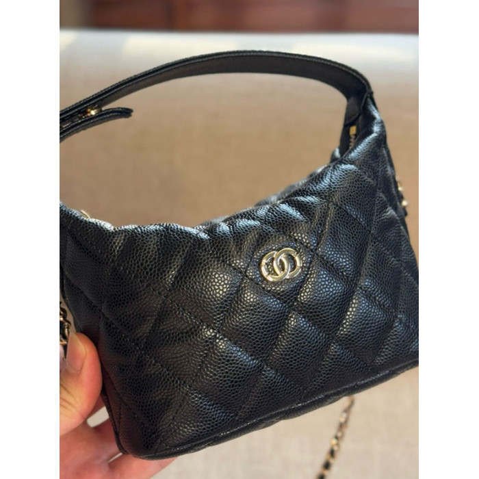 小香風包包25c黑色飯盒包Hobo牛皮手提包菱格鏈條包單肩斜背女包