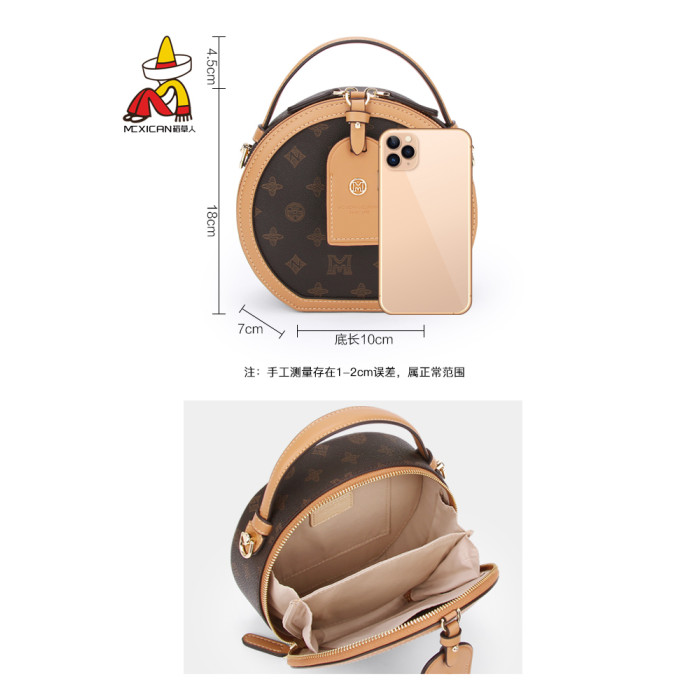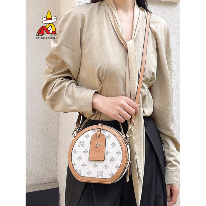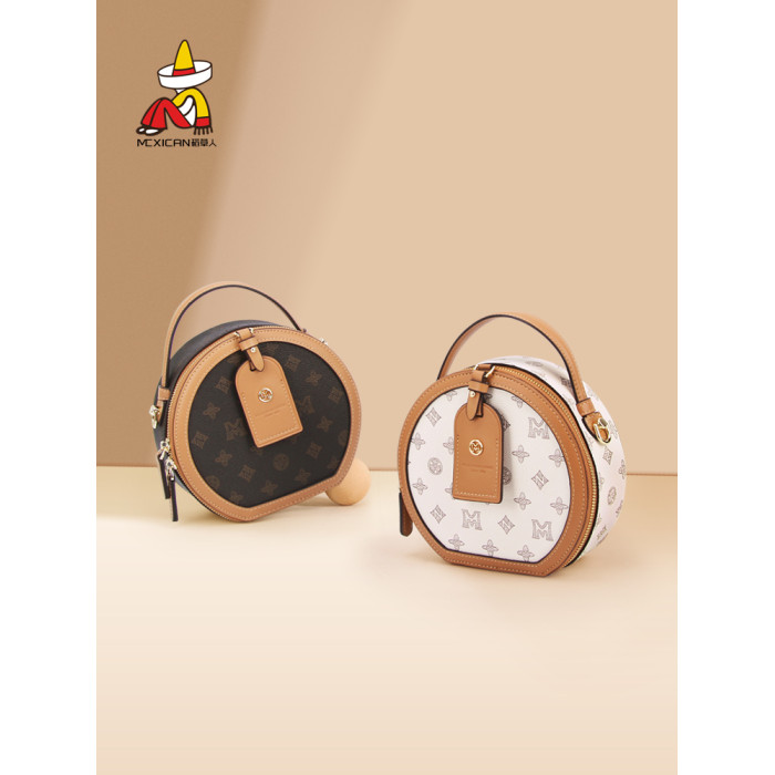 稻草人女包女士包包2025新款單肩斜後背包女印花高級感潮手提小圓包