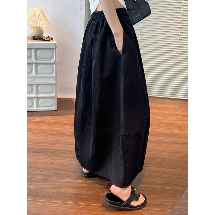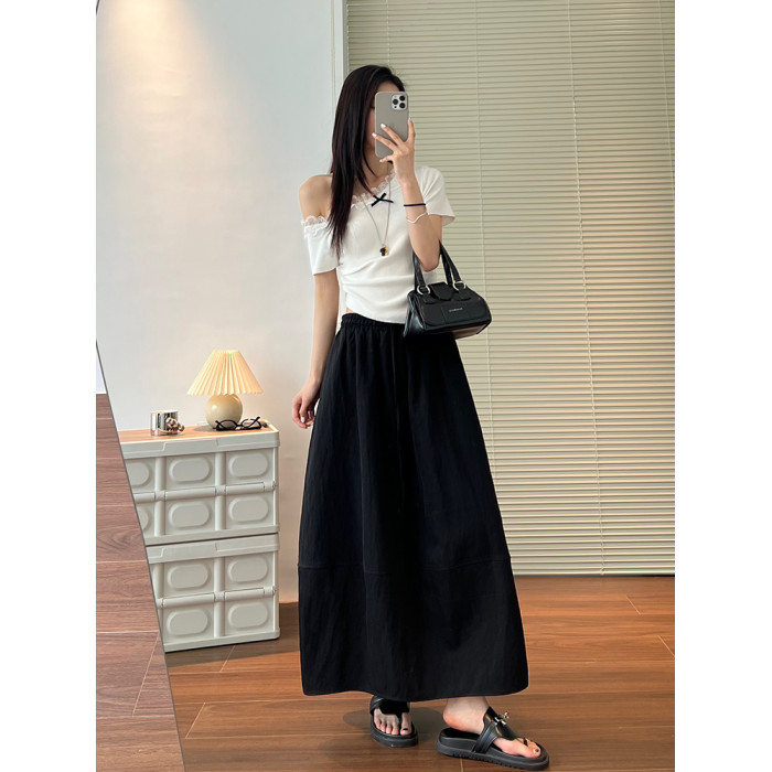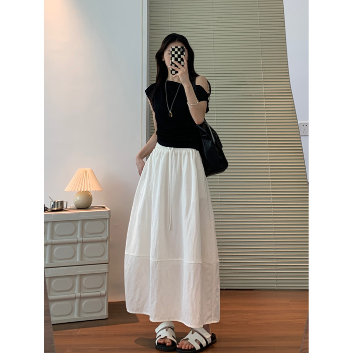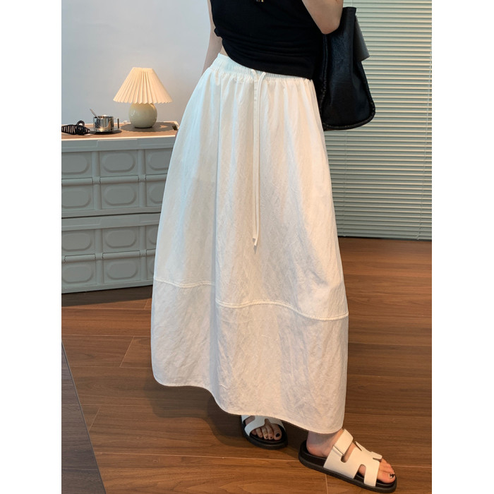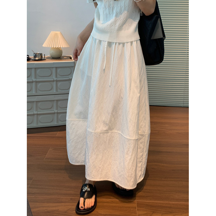 白色花苞裙女2025春夏新款氣質半裙天絲寬松空氣感中長蓬蓬半身裙