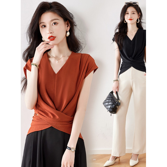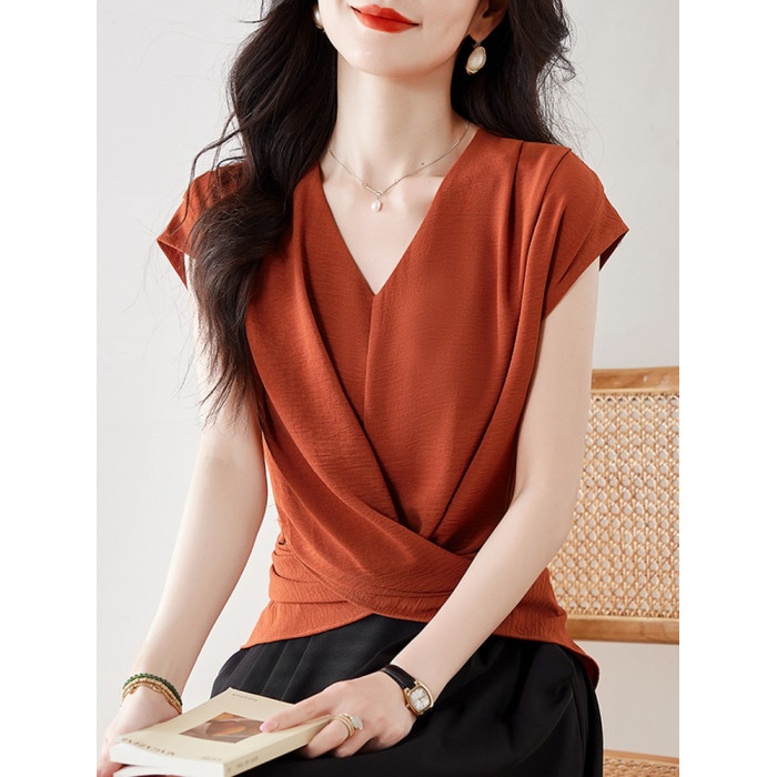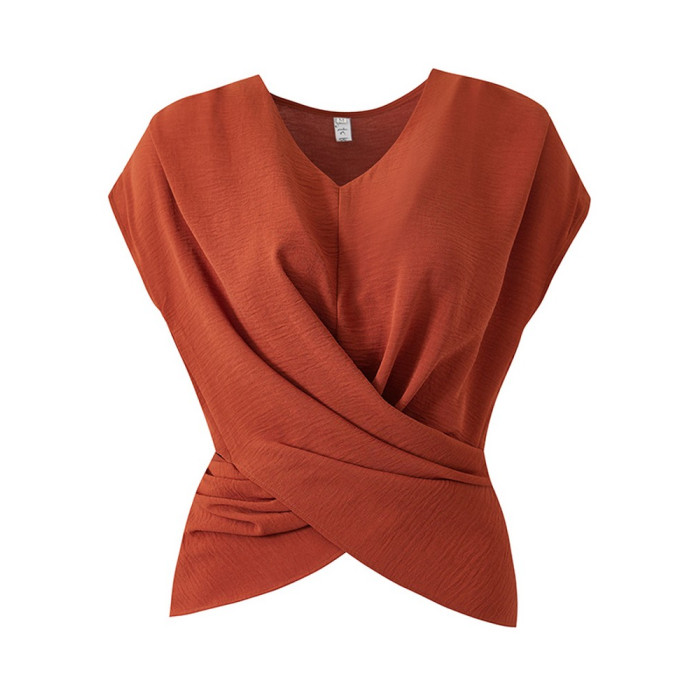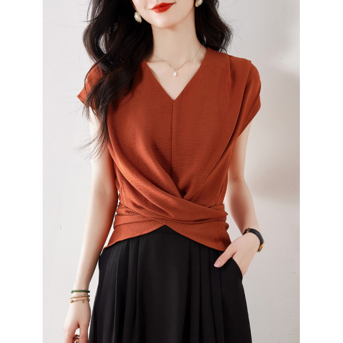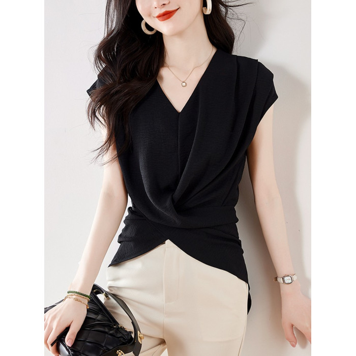 洋氣高級別致絕美小衫2025夏新款美拉德色v領無袖收腰襯衫女上衣