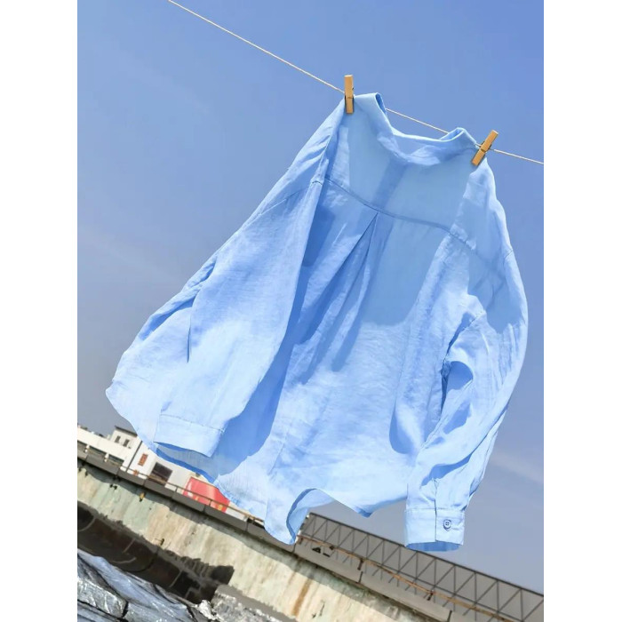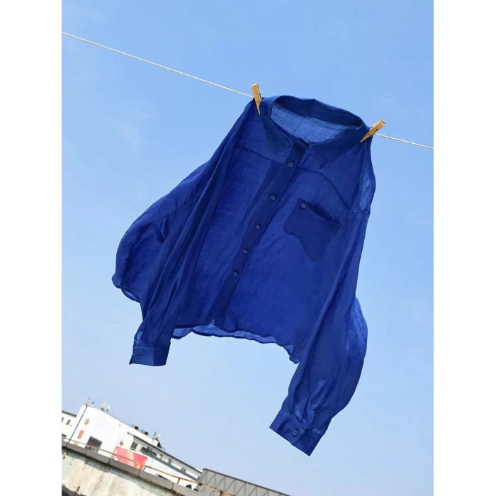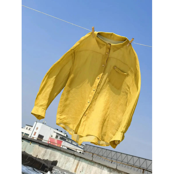 文藝小口袋翻領苧麻襯衫 寬松落肩袖薄款襯衣防曬上衣 5SP532