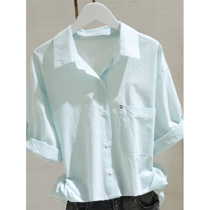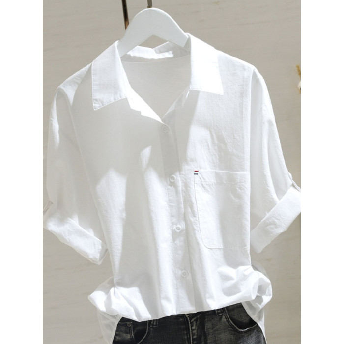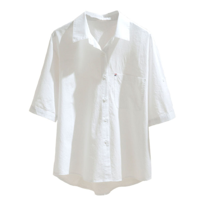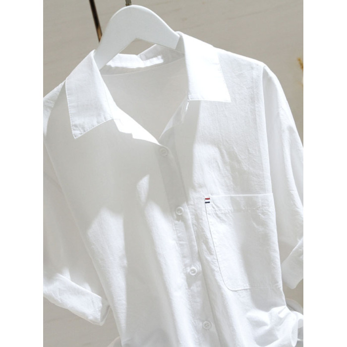 韓國新款女夏季白色短袖職業襯衫上衣大碼胖mm高級感寬松顯瘦襯衣