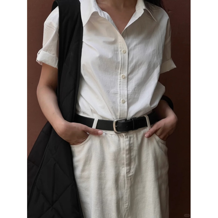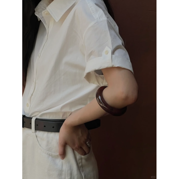 夏季款韓版復古短袖襯衫女寬松休閒設計感卷邊袖純棉洋氣時尚上衣