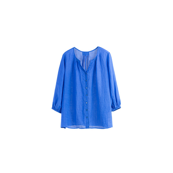 綻放388朵/【多巴胺】高支苧麻v領防曬小衫開門襟塔克七分袖襯衫