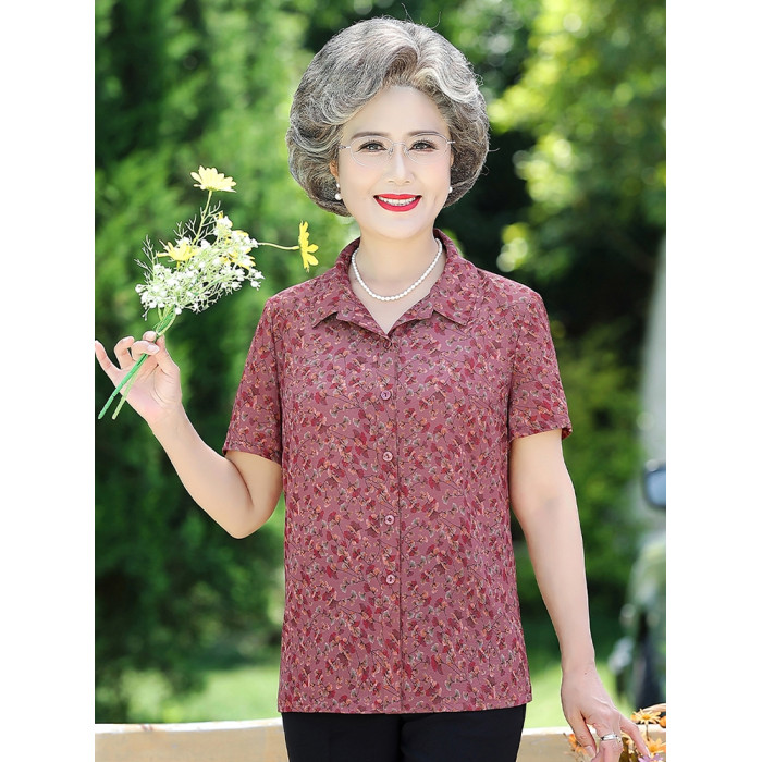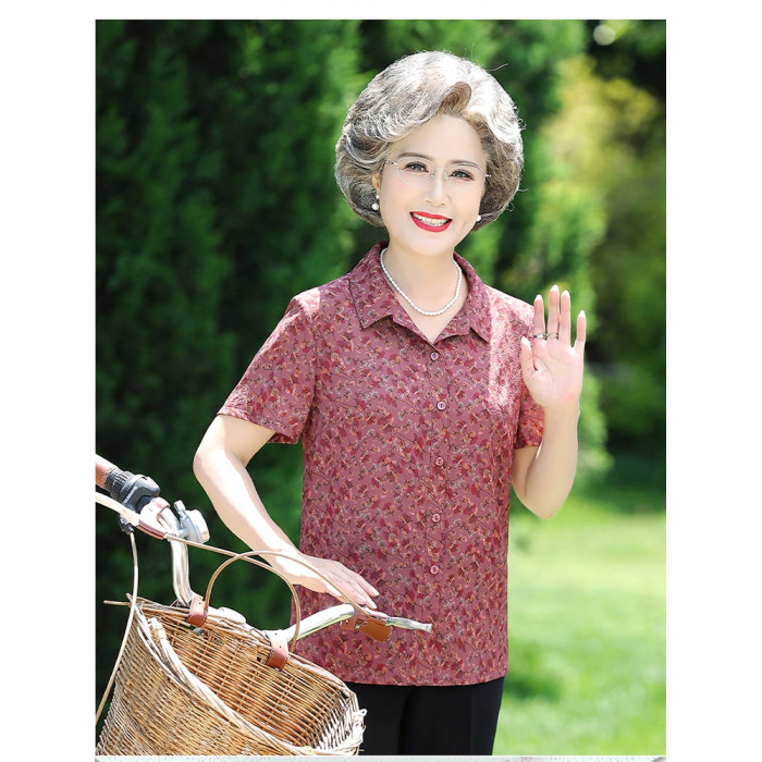 奶奶裝夏裝短袖襯衫女70嵗80媽媽太太上衣服90老年人夏季冰絲套裝
