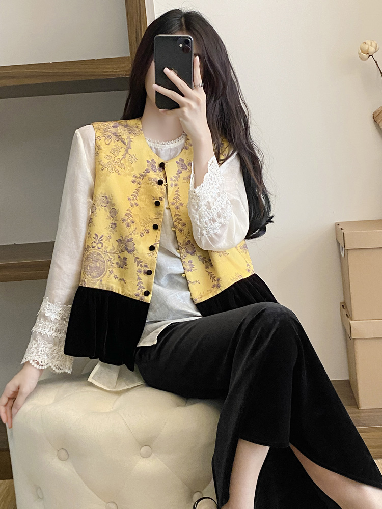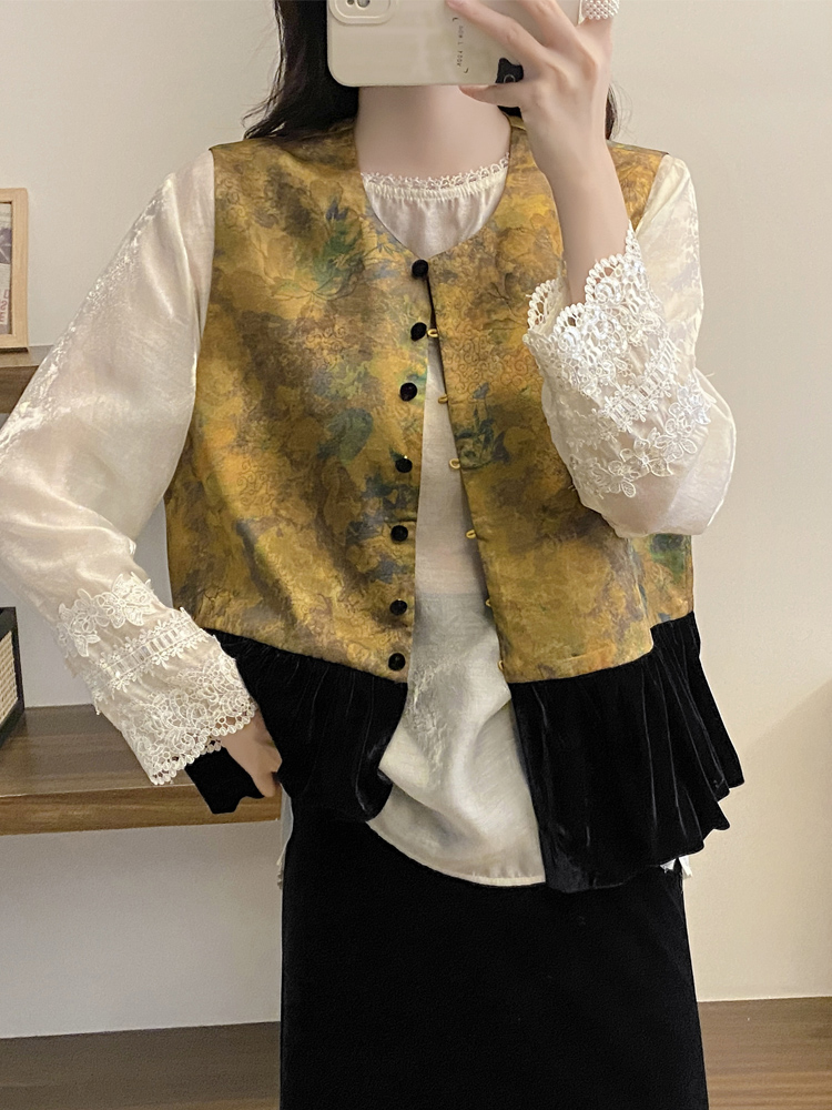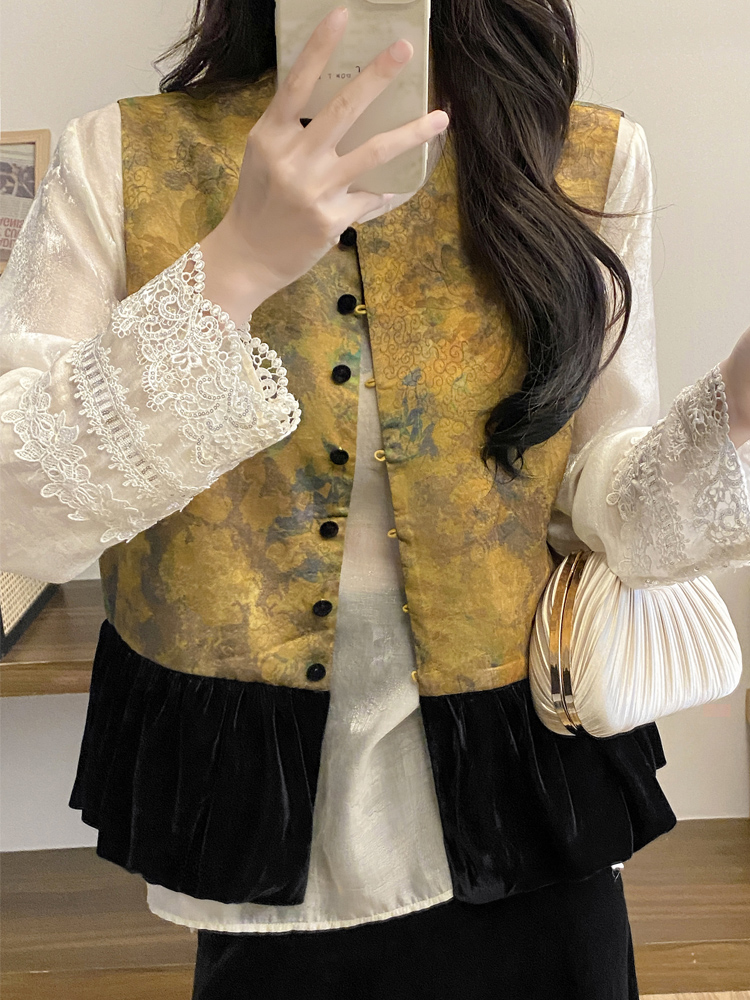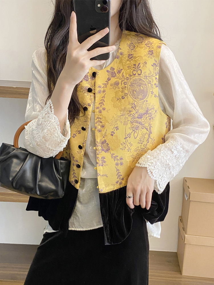 富貴花馬甲+黑色絲羢裙