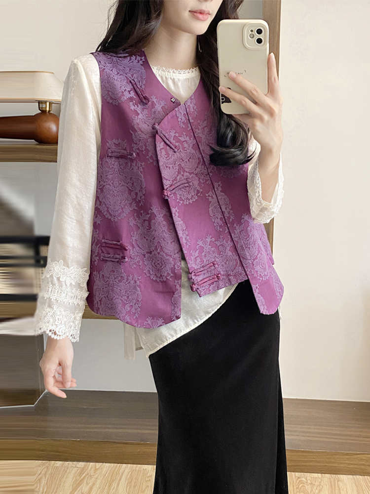 紫色馬甲+米白色小衫