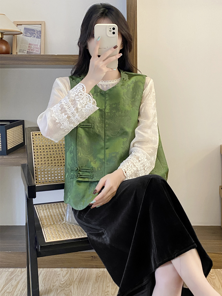 綠色馬甲+米白色小衫