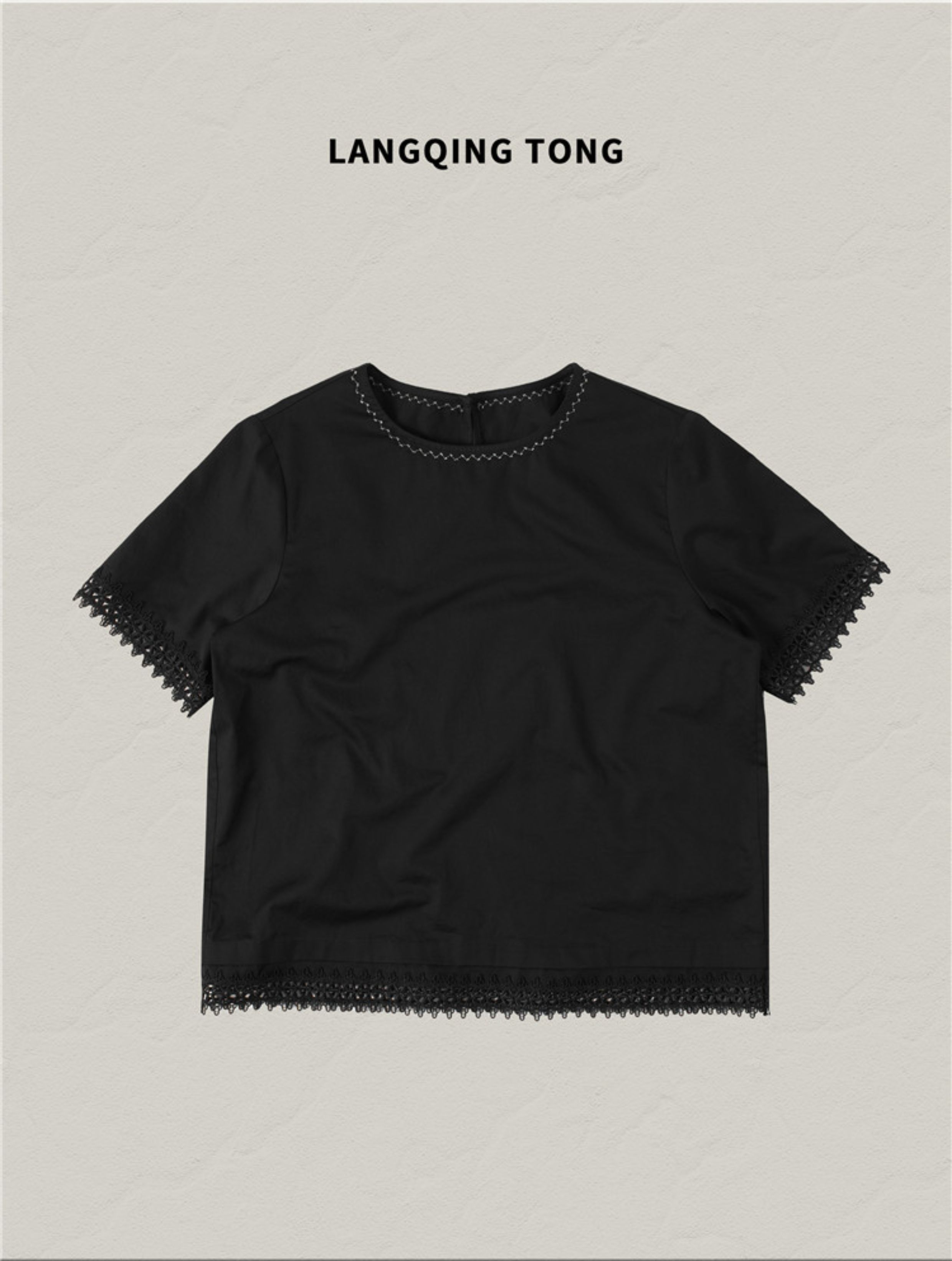 周小雅純棉鏤空花邊設計感時尚百搭2025年夏季新款上衣短袖襯衫女