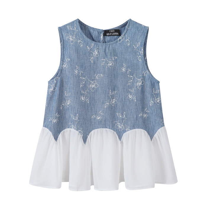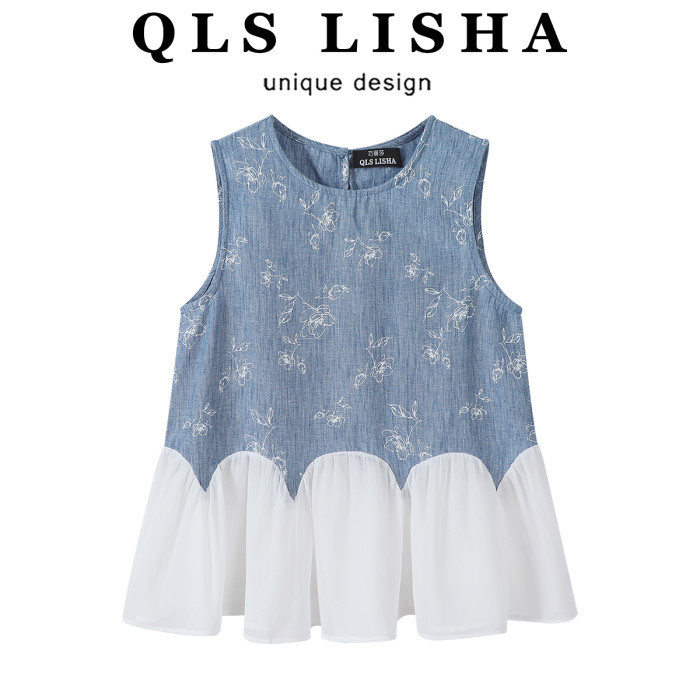 巧麗莎假兩件拼接無袖襯衫女款2025新款夏日設計感法式絕美小上衣