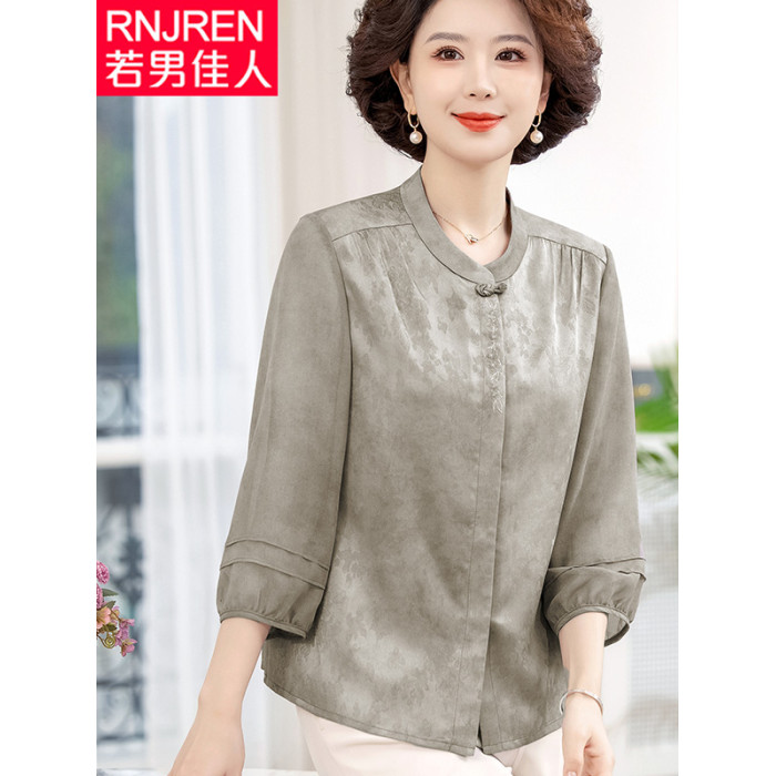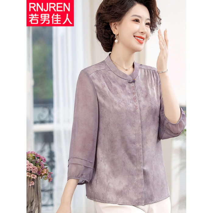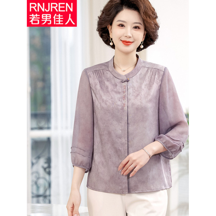 中老年女裝夏季襯衫媽媽裝長袖襯衣老年女裝春夏裝奶奶裝上衣服