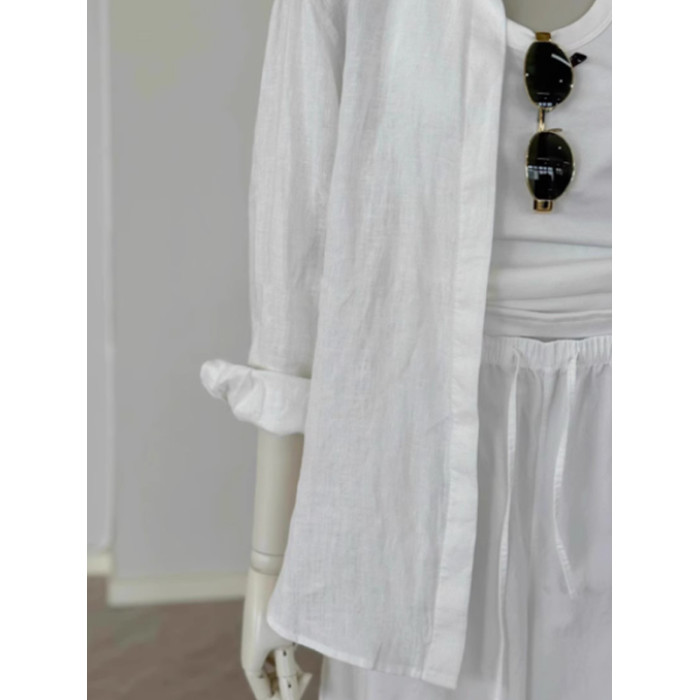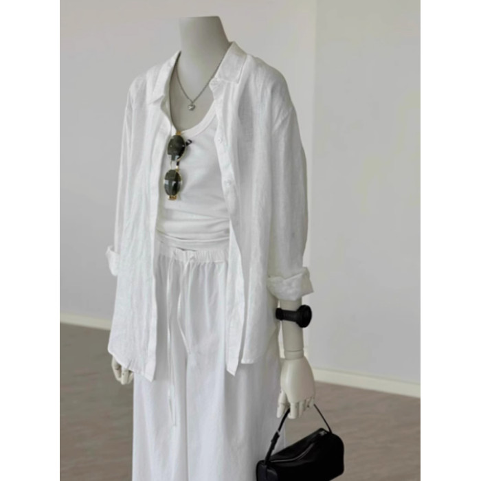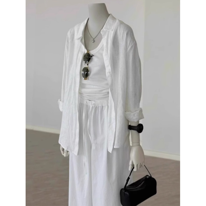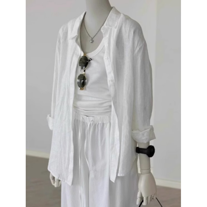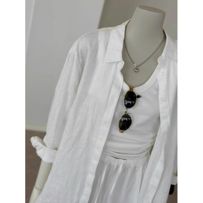 法式亞麻棉麻白色防曬襯衫外套女夏季薄款襯衣高級感輕薄開衫上衣